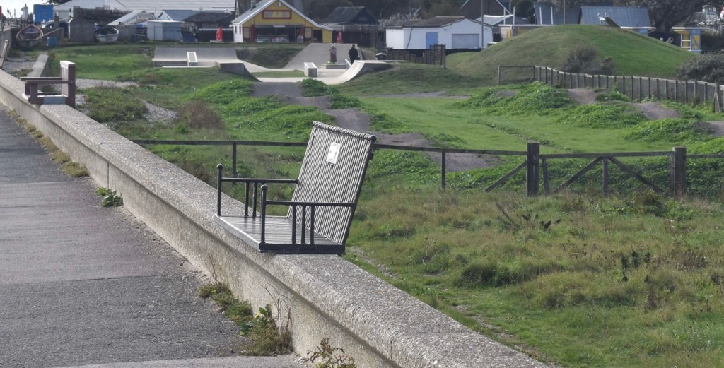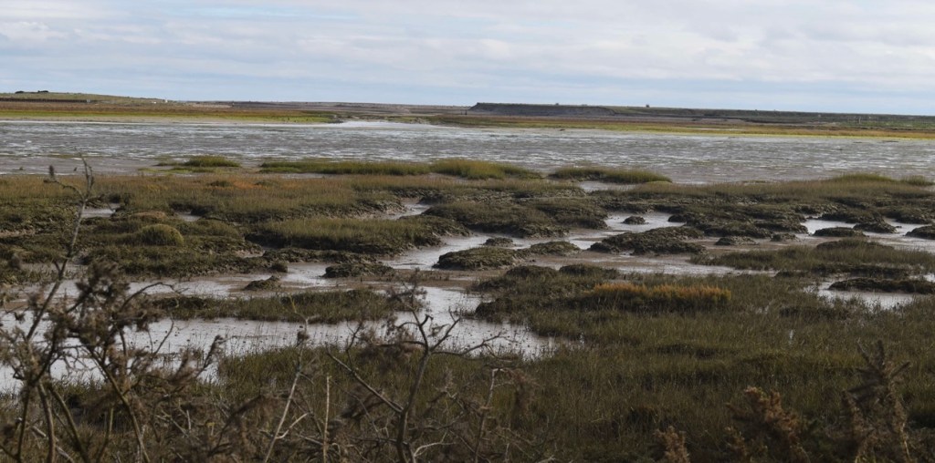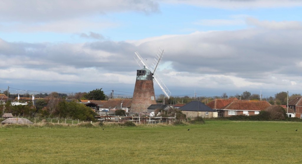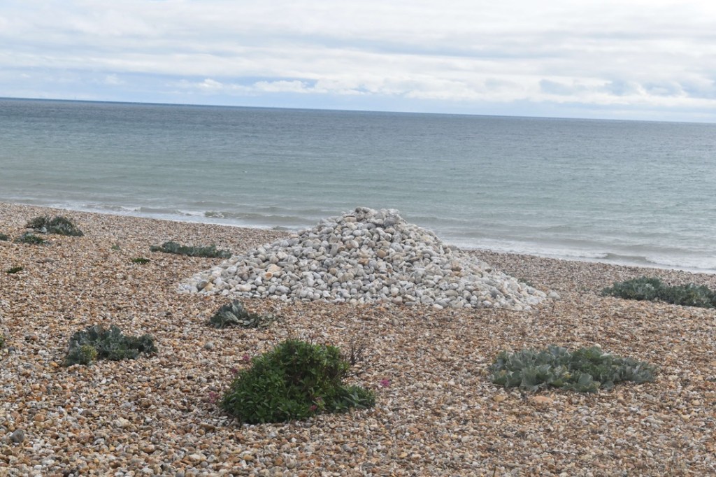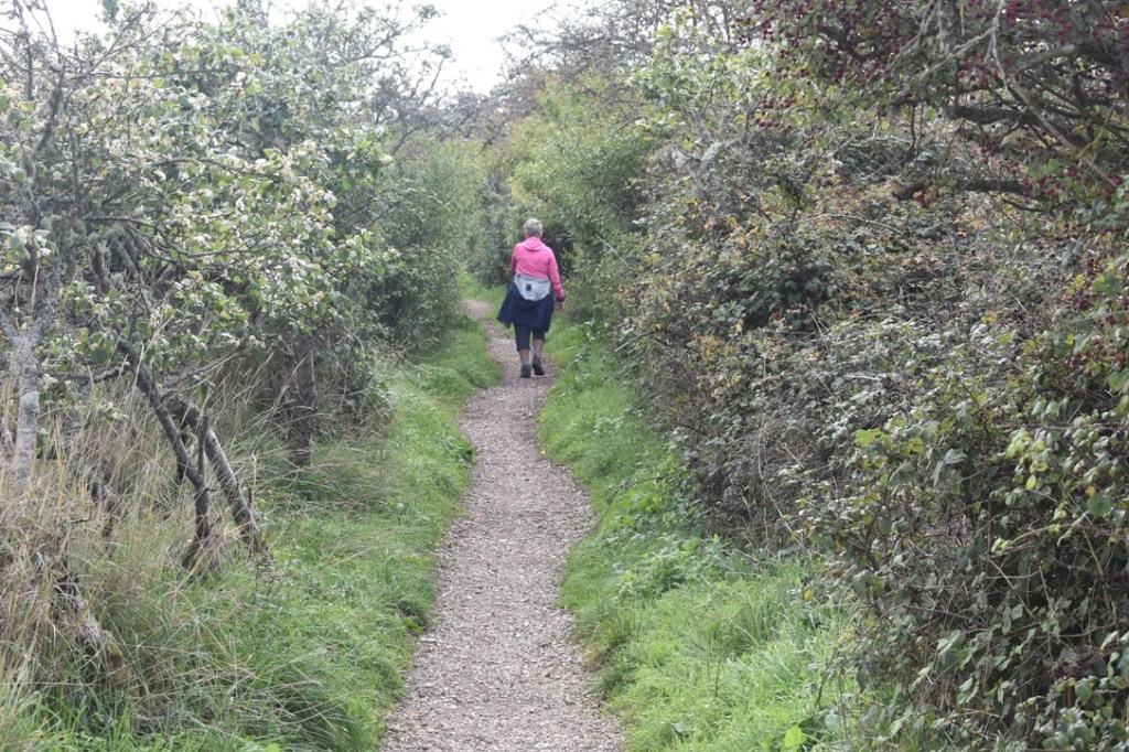The road out of Pagham had an eclectic feel – some modern builds but a number of ramshackle properties too – but all had that seasidey appeal. A decent path continued on beachside until we reached the mudflats which was a large area of nature reserve. We had a good mile stretch, with lots of hellos, as we passed groups of birdwatchers and dog walkers – clearly a popular place. The only problem was that I was desperate to ‘spend a penny’ – we’re just not used to so many people being about. (It’s ironic using the phrase ‘spend a penny’ when I’d paid a pound to use a public toilet earlier in the week)!!