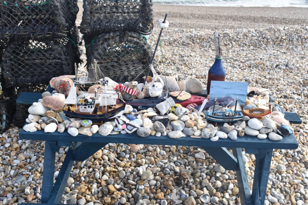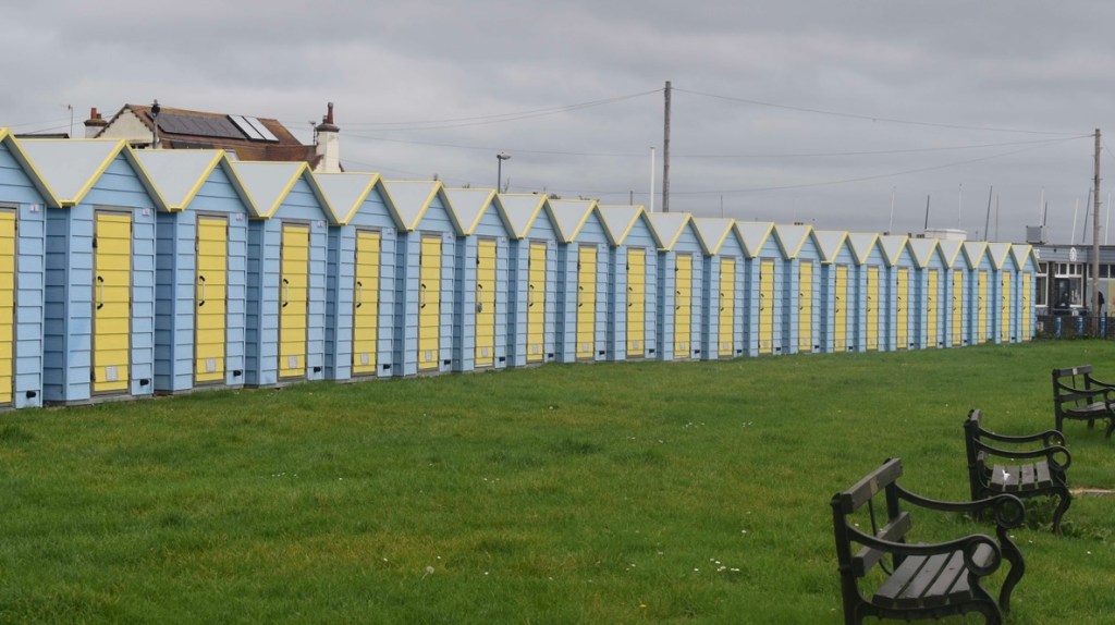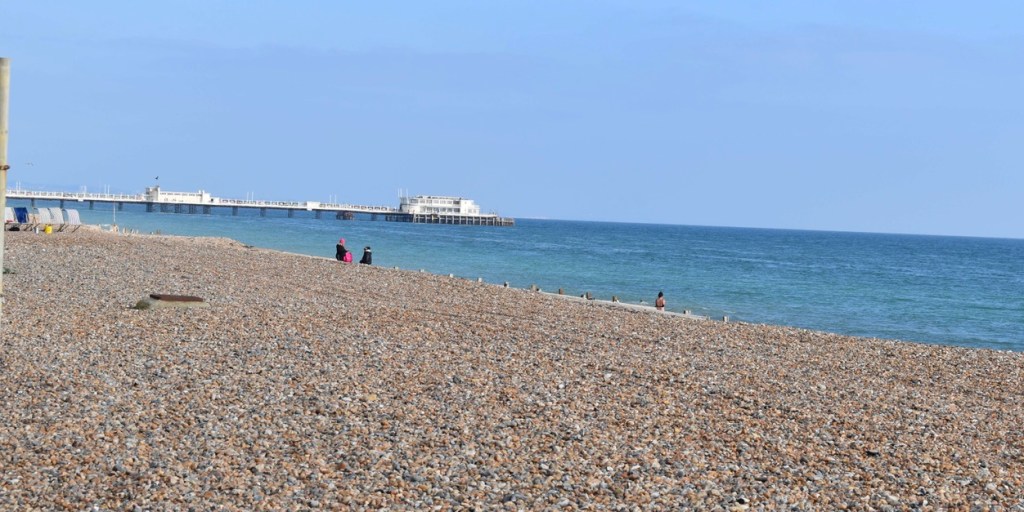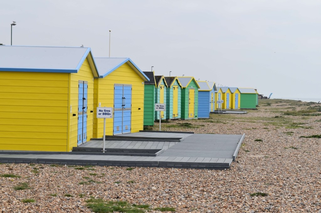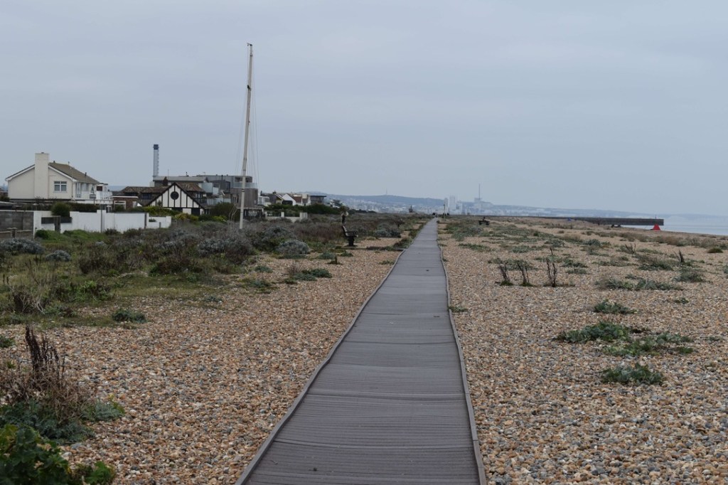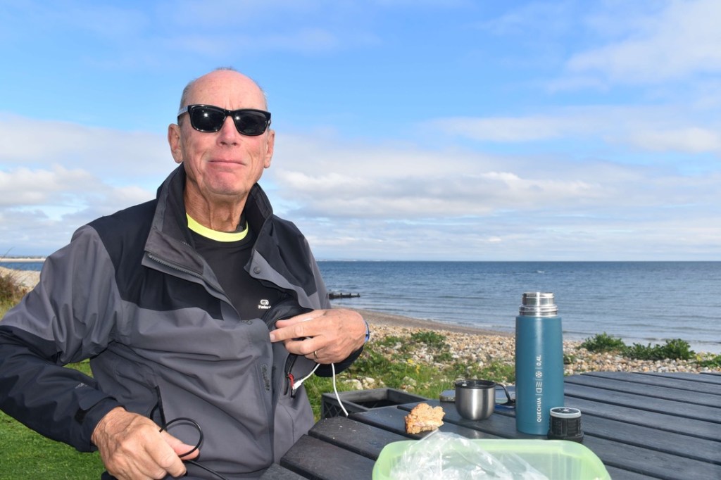 6 miles in and we had reached the pretty seaside town of Selsey, and it was perfect timing to find a picnic bench beside the sea to have our sandwiches. It was sunny blue sky day today and we enjoyed the warmth of the sun as we tucked in. I was stripped down to my T-shirt by now – Steve was still clinging on to his thick jacket and many layers!