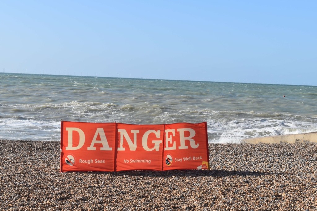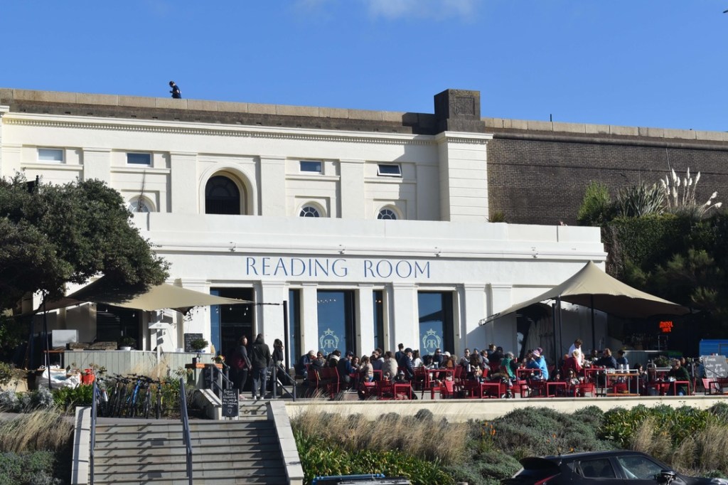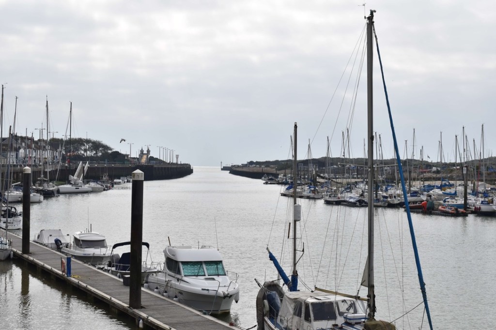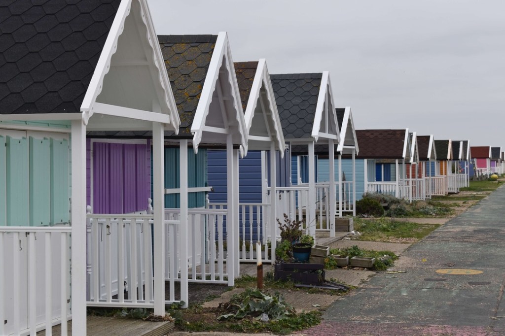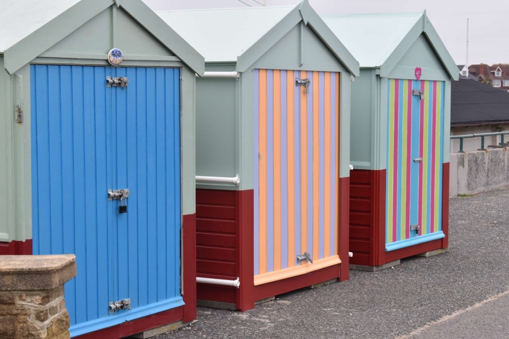 6 miles in and we had reached the pretty seaside town of Selsey, and it was perfect timing to find a picnic bench beside the sea to have our sandwiches. It was sunny blue sky day today and we enjoyed the warmth of the sun as we tucked in. I was stripped down to my T-shirt by now – Steve was still clinging on to his thick jacket and many layers!