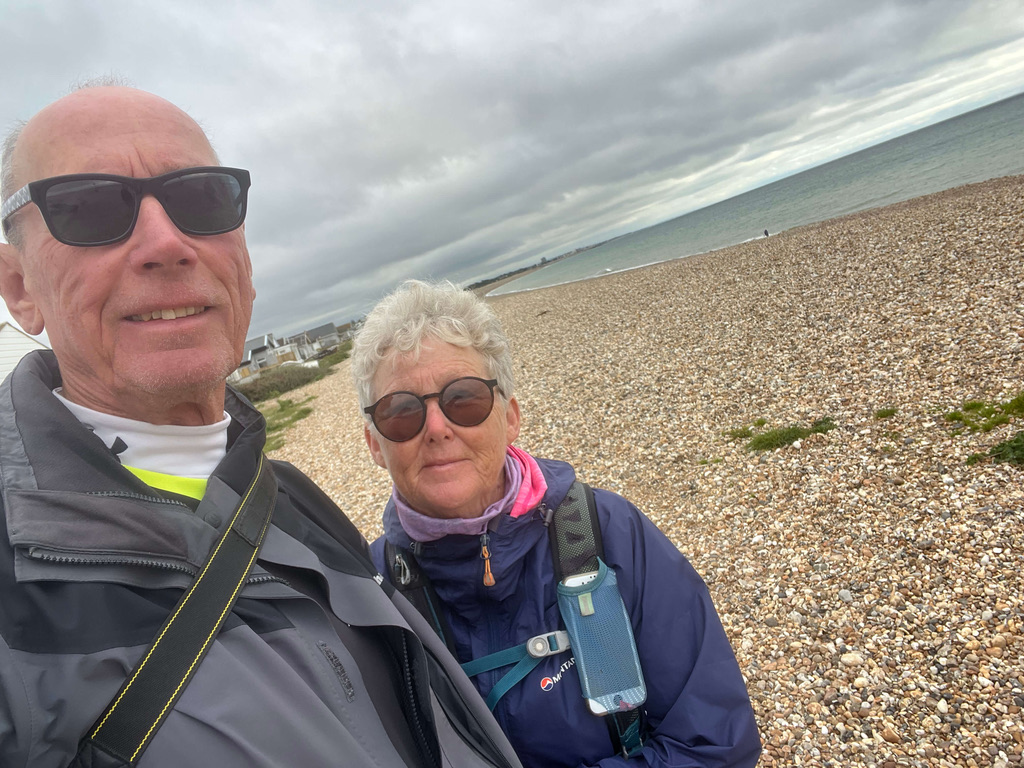 But the crunch came at the 15 mile spot when we were faced with 1.5 miles of shingle walking along Bracklesham Bay – absolutely savage. My blistered feet were screaming out to me to stop. Steve manages this terrain so much better and wandered ahead, so I was always on catch up. So, for 15 miles I loved it and felt such great achievement … but I resorted to be being a big grump for the very last bit. Still we did it, 16.5 miles in total today – truly a lovely section, except for the end!
