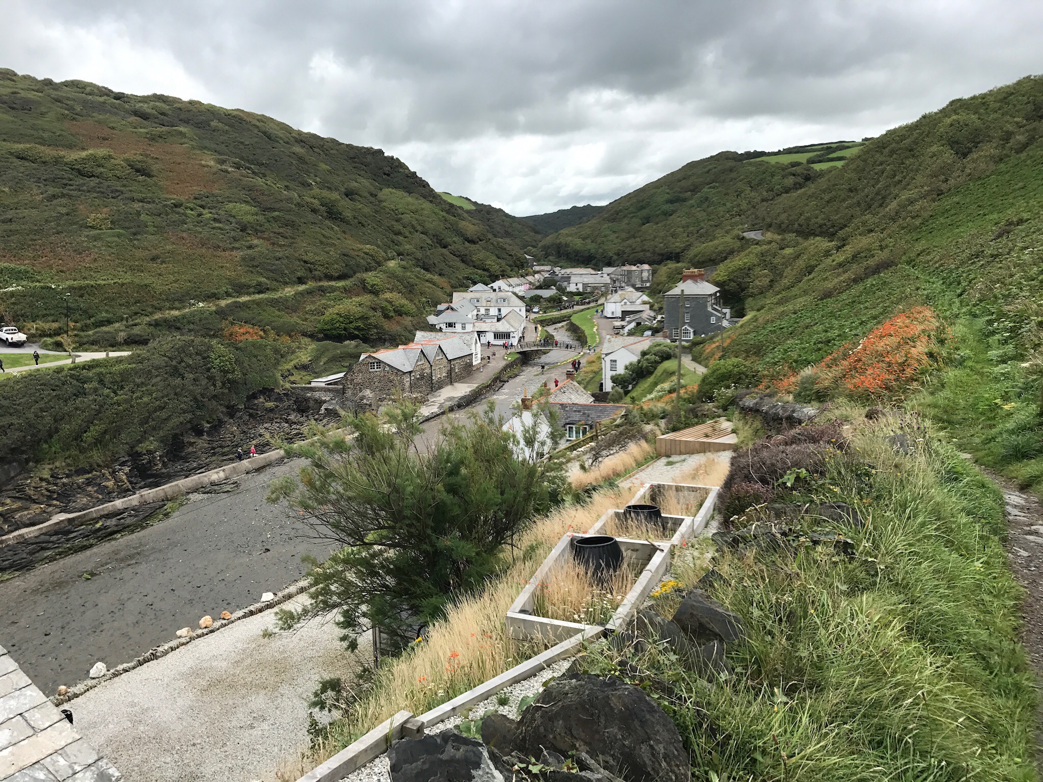 We both headed out then along the coastal path to Tintagel … the guide had promised an easier walk from there on in. Still a number of ups and downs and some pretty giddy steep drops to the side on what was a particularly blowy day. Made it in fairly good time though and found ourselves amongst the throng of tourists in Tintagel.