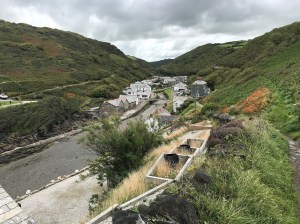 A comfortable stay in Marshgate last night – Roz and Roger were really friendly and accommodating B&B hosts. Popped up to the village pub for ‘Steak Night’ dinner. After another delicious breakfast this morning (all local produce including homemade bread and preserves) Steve headed out to start the walk from Crackington Haven … in torrential rain!! Roz kindly drove me to Boscastle where I mooched around for a while in museum, shops, cafe etc. And then took a little walk up the coastal path to meet Steve.