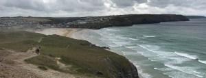 The tides just about allowed us to walk the stretch of Perran Sands and thus we avoided a whole stretch of sand dunes – it took forever to get along it but we were rewarded at the end by a steep but manageable path up (it actually had a hand rail) and onto the final stretch to Perranporth.