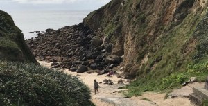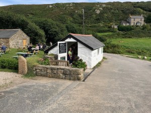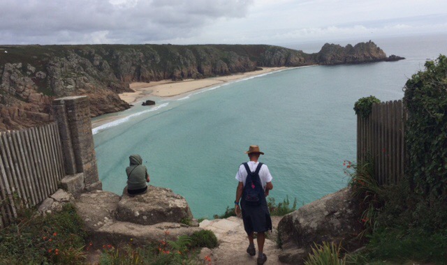 It was from about this point that the constant ascents and descents started and they were tough … and it was getting hotter and hotter. At one point Steve spotted some walkers ahead and commented that they must have taken the wrong path as they were walking so close to the cliff edge – “there’s no way I’ll be doing that” he said!! But oh yes, you’ve got it, 10 minutes later we were on that path. I’ll called on all my angels to sit on our shoulders during this day. Just past the Minnack theatre we had to walk down the steepest of boulder steps – well I had to do some of it on my bottom – I can’t describe how steep and scary it was. And the day went on and on like this – the last mile or so was cliffside bolders – there was no let up. We reached Lamorna after 7 hours of walking – so relieved to eventually find our gorgeous airbnb for the night.