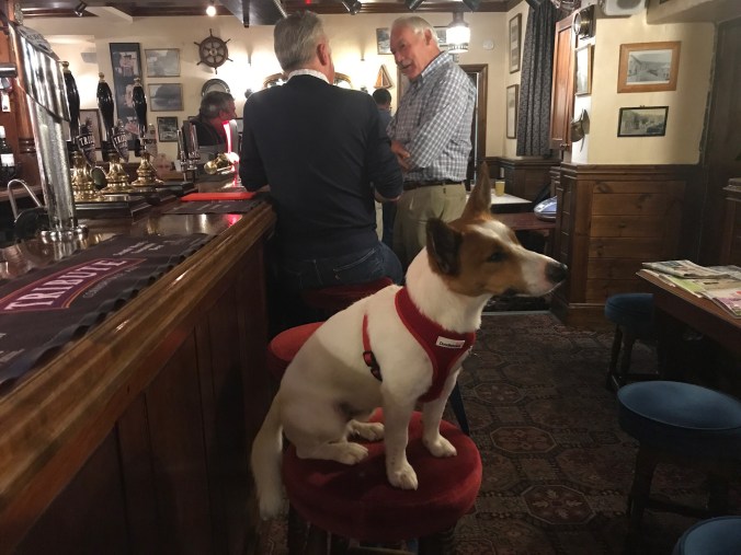 Last night we had dined and wined at The Ship Inn and met this lovely little chap with his owner – they had completed the Portloe – Megavissey walk that day and other parts of the coastline – so we stayed way beyond our usual bedtime to exchange walking stories and scary experiences.