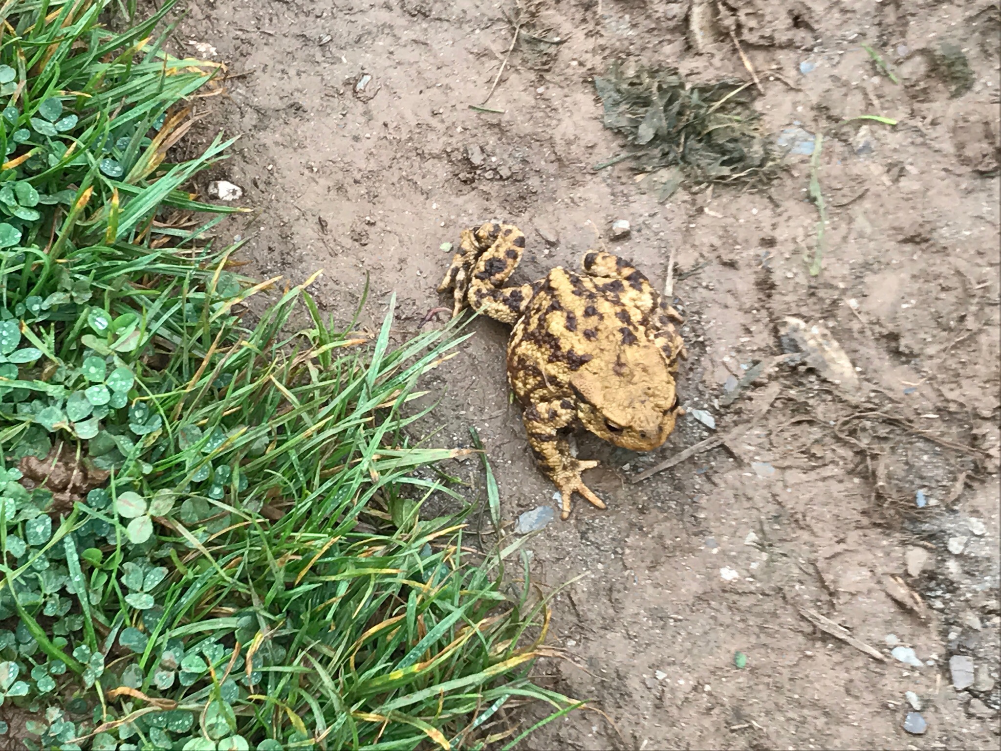 Met a little more wildlife today – still too many cows for my liking – but also came across Freddy Frog basking in the sun on our path and there were hundreds of Red Admiral butterflies – some outstretched on the path, others fluttering around in great numbers.