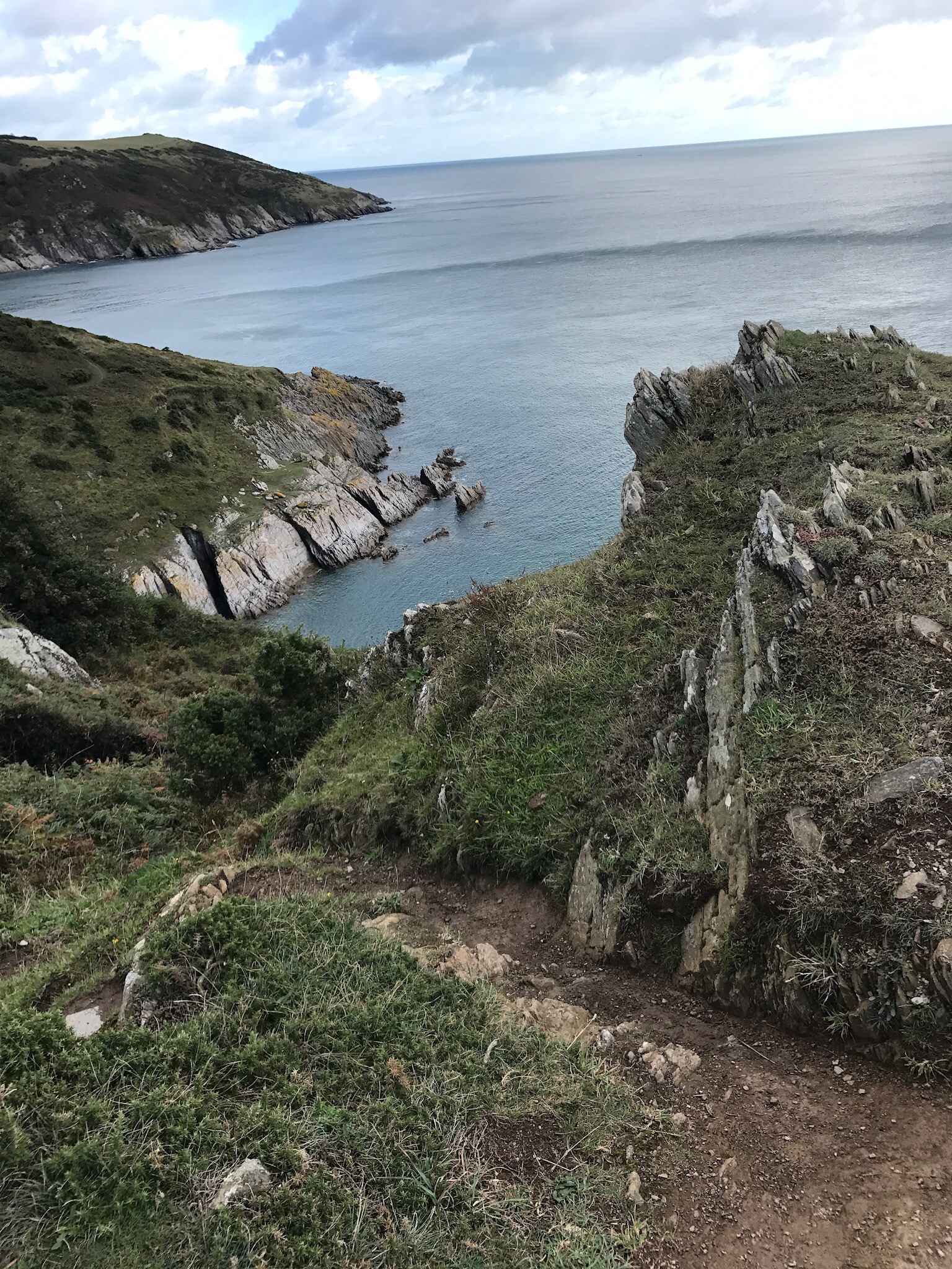 Having made significant efforts over the last few days Mrs R decided on option B (bus) today for the first part of the journey to Brixham which with hindsight was an extremely cunning plan! Leaving Steve to do the 11 miles first part of the walk, classified as ‘strenuous’ in the guide, it certainly lived up to that description with no less than 7 or 8 big climbs. The coastal path has a number of different methods of inflicting this punishment on you and today offered a variation of either steps, zig zags and grass / mud banks to clamber up and down whilst also taking in the stunning views on a lovely weather day.