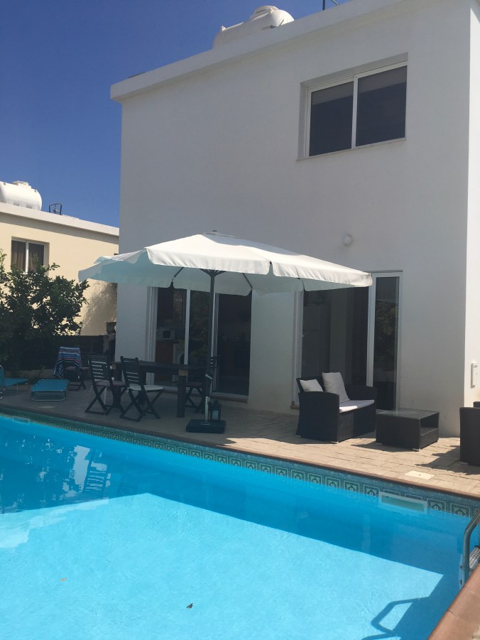 Our lovely driver was confident when dropping us off at Sunset Villas 2, Pernera – we unloaded ourselves and our selection of suitcases and hand luggage at the top of the road, paid up and waved him off.  Next step was to tackle the key safe, lining up the 4  numbers in various positions and almost forcing the box to open … but to no success!!  Rang the doorbell – no answer.  In the meantime, Wendy and Caroline were ferrying 10 pieces of luggage down the road to Villa no. 2.  I went to check out the back garden, lights were on in the villa and I noticed clothes, towels and a newspaper by the poolside.  Clearly we had picked on the wrong villa.  Once we established this we went off in parties searching all villas in the area … still drew a blank.  It was dark, not a soul around, we were getting pretty tired and travel weary by this time – we all decided we would laugh about it later … but not at this particular moment!! πŸ˜’  Finally resorted to phoning our host who kindly came to the rescue – picked us up and took us to the Sunset Villas, (development 1) villa no. 2 … and all was well.  He even whisked Wendy and I off to the shops to pick up some goodies for breakfast.  (We had wisely stocked up on wine, beer and sarnies at the airport to cover the ‘first night’ gathering).