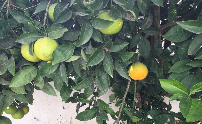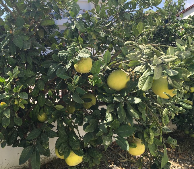 Steve has now started his daily running regime – set the alarm for 6.30am this morning to run his 8 miles. I’m still talking about it!! Still keeping up my 50 laps of the pool a day though – need to do something to counteract all this holiday eating and drinking. Each evening Caroline, Wendy and I start off proceedings with G&T, and guess what Karen, we have our own supply of grapefruits, lemons and limes in the garden. The garden of paradise!!