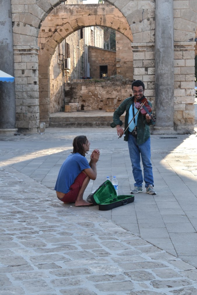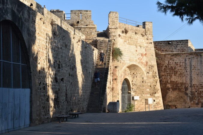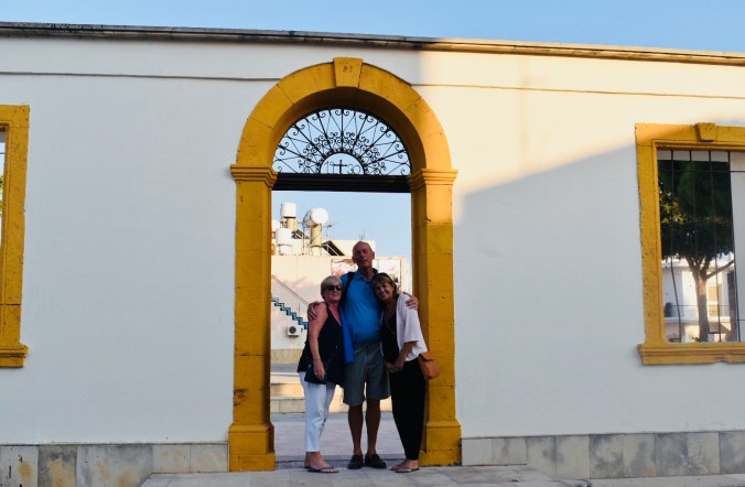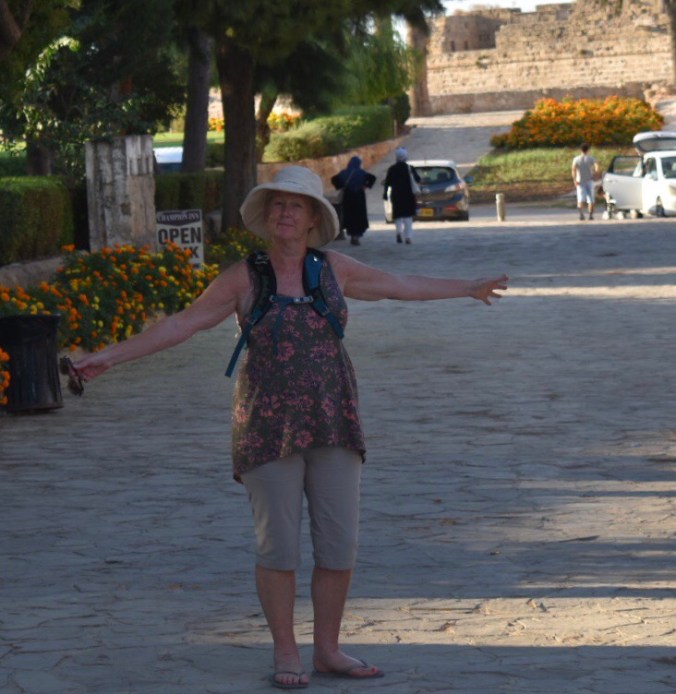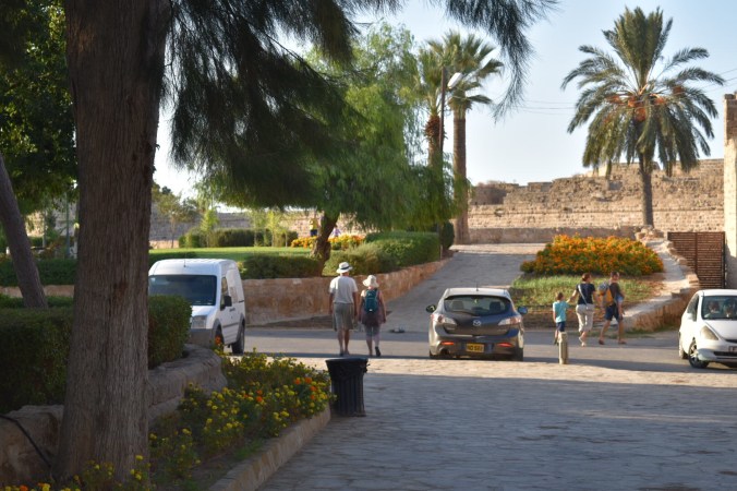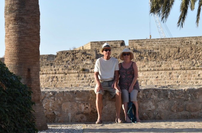 Yesterday we actually headed out on a bus trip – yes, all 5 of us, Tom came too! We met up with Andy, Steve, Cath and Cath’s Mum and set off in George’s minibus to Famagusta. George was so incredibly knowledgeable about Cyprus’ history – ancient and modern – and delivered it so interestingly with lots of humour thrown in – made the journey so enjoyable. We were able to visit the Ghost Town of Famagusta – the abandoned buildings – which remain trapped in a time-lock since the Turkish invasion in 1974. Then we spent time wandering around the beautiful old town centre with its old Venetian walls and gothic churches. All a bit scary with rules for this and rules for that. We had to go through a strict border control as we passed into Turkey and we had to learn about the restrictions for what we could bring back in – no fake designer handbags, no gold and no drugs – spoil sports!! We were not allowed to take photographs near any of the military areas or the ‘ghost town’ and there were regular posters of armed military personnel with this warning.