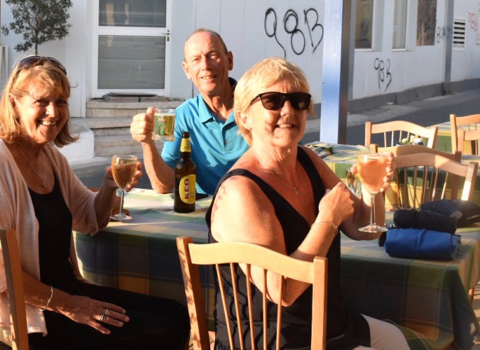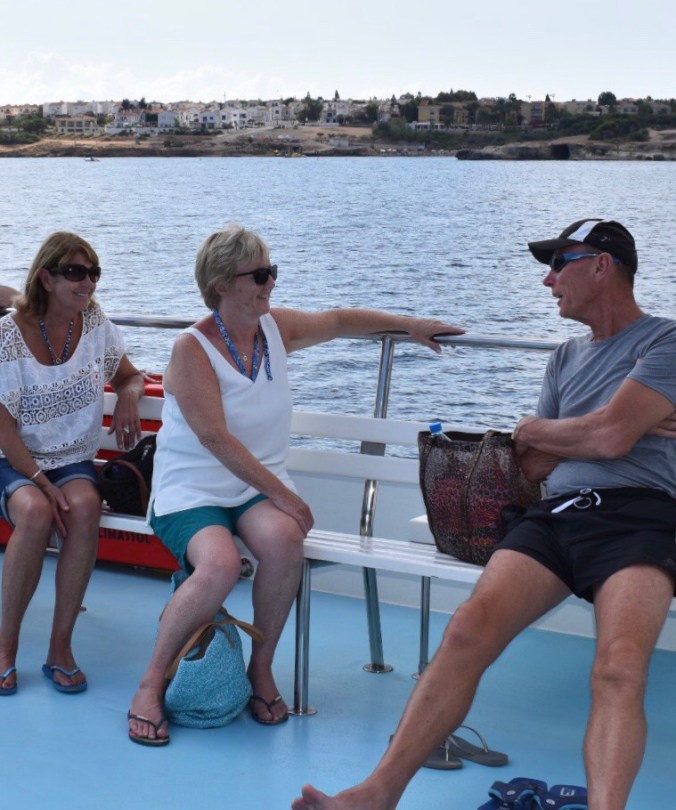 We have actually had some variations to the daily routines – yes, we have got off those sun beds from time to time!! Spent a day on the beach and did some more ‘bobbing around’ in the salty sea. The sea is much warmer than our pool so makes for a good alternative. We enjoyed a fabulous boat trip along the coast to Famagusta and then back to Cape Greco where we were able to jump off for a swim – the water was so warm and crystal clear. The trip turns into a bit of a party boat as the 70s and 80s tracks entertain us along the way – couldn’t help but bring out those John Travolta moves from time to time!