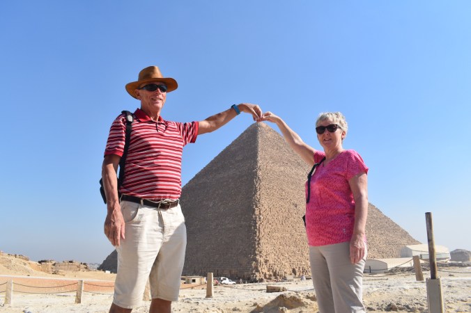 So, up at 6.30am this morning as we had decided on an early trip to the Pyramids – to beat the crowds and the midday sun. And we called good, trusty old Uber. Whilst waiting a car drew up and said ‘Uber’ so we dutifully got in – only to discover 5 minutes later that he wasn’t Uber at all – and so the pantomime began!! We did eventually get to Giza but the journey had involved plenty of arguing, (even some expletives which is a rarity for Steve!), being terrified at the speed whilst the driver was using his phone, constantly being haggled to use him as a guide for the day and then the inevitable fallout over what he expected us to pay him. Steve had to shout at him to unlock the doors and then settled the payment once we were outside – at least he didn’t chase us but I’d love to have been able to translate his farewell words!!