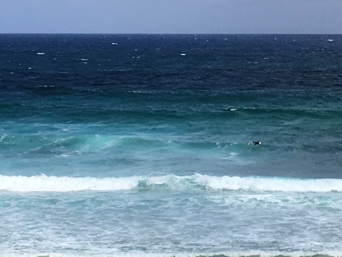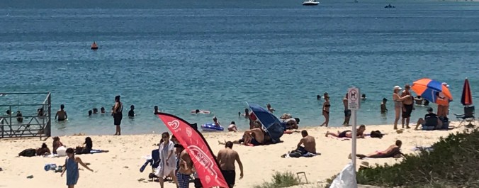 We had booked into an airport hotel for the night as Tom was leaving that day too, but not till late – it gave us the opportunity to eek things out and spend one last day with him. It was a beautiful day so we headed out to Yarra Bay (where Steve had run the Parkrun that morning) … had lunch in the sailing club and a final swim. The first stretch of water we’d been to in Australia that didn’t have huge rolling waves – it did however have wind and currents …. and so many inflatables … ducks, flamingoes, peacocks, crocodiles, sharks, even slices of water melon … and we watched several of them get blown away out of reach – several dollars down the drain (or out to sea I should say)!