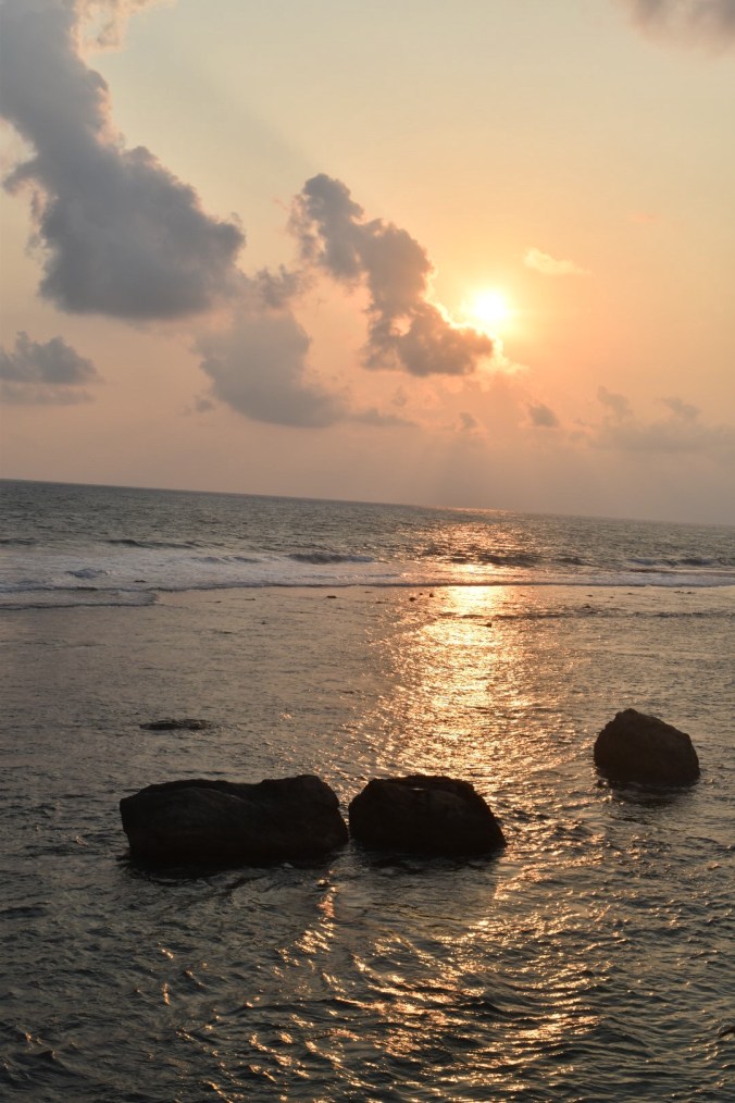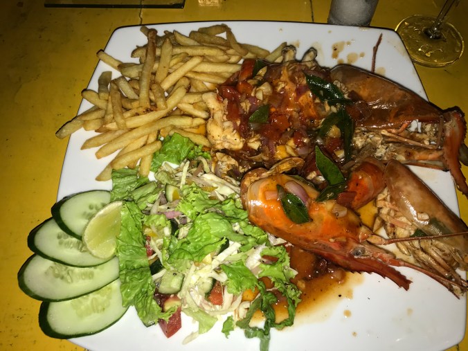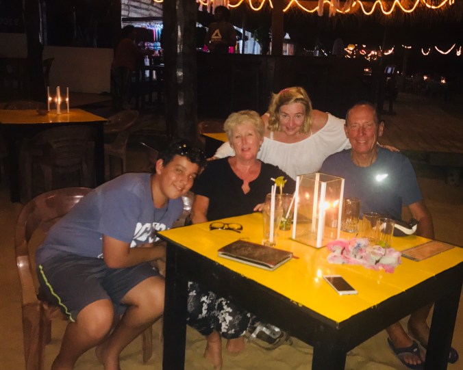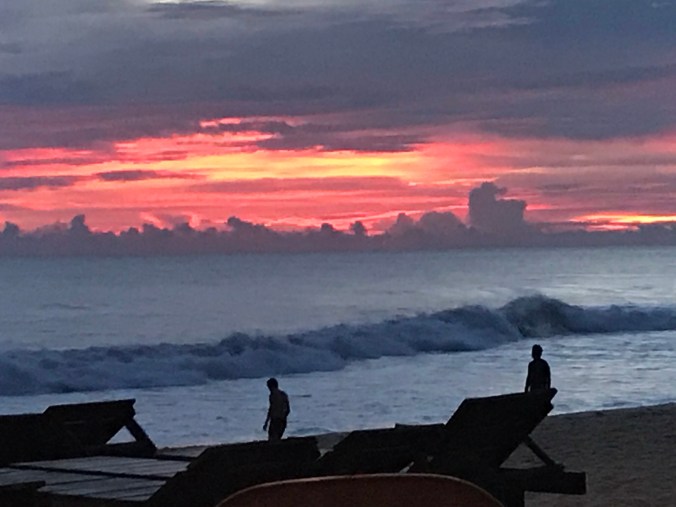 A final meal out at our favourite beach restaurant- Chill Space – some delicious seafood and a bottle of their finest wine (well actually, the only wine on their list … simply entitled ‘red wine!’ And our last sunset.
