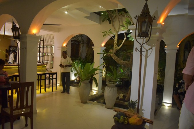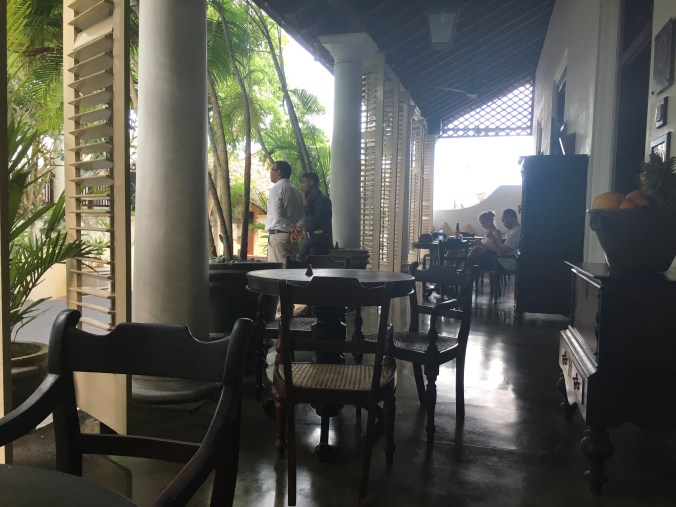 And then it was off to find somewhere for dinner – a fair few restaurants to choose from. It had been an incredibly hot day and we were beginning to feel a bit weary – we both found that we didn’t have an enormous appetite but fancied something light with a glass or two of wine. Now, we really don’t have a drink problem but the first 4 restaurants we tried were ‘alcohol free’ – what was going on? Take note any friends who are coming out for the cricket in November! We did find perfection in the end – The Galle Fort Hotel – beautiful dinner, beautiful wine, beautiful location, first-class service – a real treat.