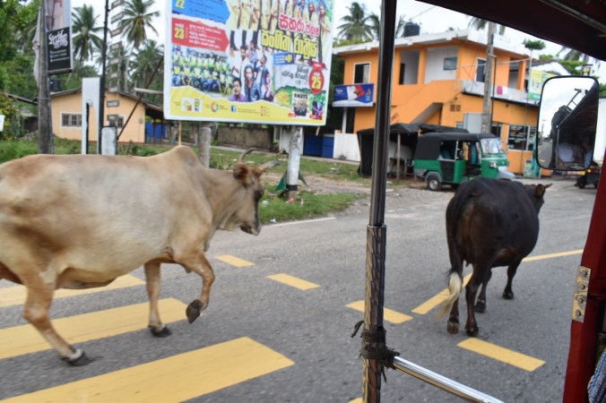 And then we ventured out on our tuk tuk journey home – every journey’s an adventure – busy shopping areas, stunning beach views, local markets … cows wandering in front of you! And then, for over a mile, we had to pick our way through chaos as we faced a political demonstration in motorcade form head on – the noise was tremendous – young people demonstrating to out the current Prime Minister.