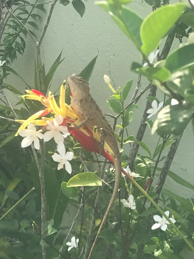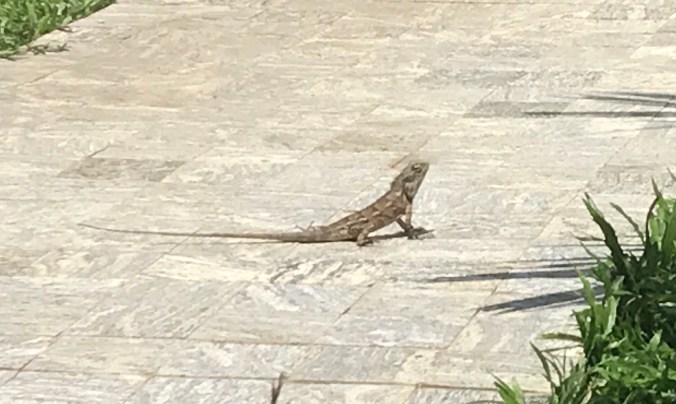The last full day of our trip – Steve got up at some crazy time of the morning to ‘endure’ his final run in these extreme temperatures. I got up to break the back of the sorting and packing. As always, a delicious breakfast cooked and served by Monty and Azi and then we headed out for our final beach day. We chose to go to Turtle Beach which, although busy, at least you can swim without being dragged out to sea or battered against the rocks! Lots of activity too with 3 regular visiting turtles during the day.