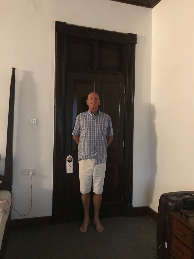 After breakfast we hit the streets of downtown Colombo 8 to find a pharmacy. Then equipped with cough mixture and lozenges we walked a but further to track down an ATM. Now Sri Lanka IS a beautiful country … but not so the back streets of Colombo. Many of the buildings and pavements are in a state of decay and sadly ridiculously dirty. Our pretty and clean hotel just seems to have been planted in a ‘not so pretty and clean’ area of town. But it was all an experience and even Steve with his breathing problems soldiered on amidst the fumes emanating from the hordes of tuk tuks and their cheap petrol. We had just been discussing tripping hazards when literally about 20 yards from the hotel Steve went flying off the pavement into the gutter … into the biggest and muddiest puddle we’d seen all morning. He was covered in mud from head to toe and had grazed his hand and knee …. but mostly his pride was wounded. We managed to sneak back into the hotel unseen and all was recovered.