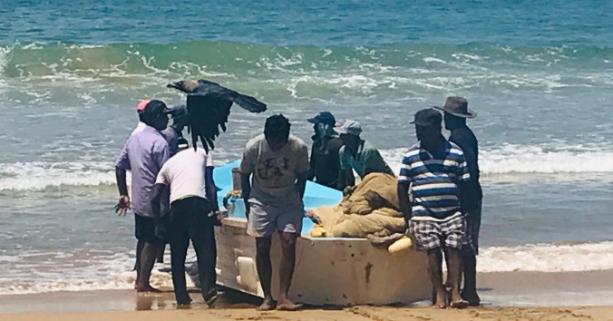 A pretty straightforward day today – arranged to meet Richard and Judy at Sugar Beach. Headed out there nice and early to maximise the day. It’s a beautiful beach we’ve discovered, predominantly a locals’ beach – just the odd tourist. Today it was fabulous to be there as there was lots of fishing activity. It’s incredible the lengths they go to to bring in a few fish – not sure how lucrative it can be as there’s a lot of men to share the profits.