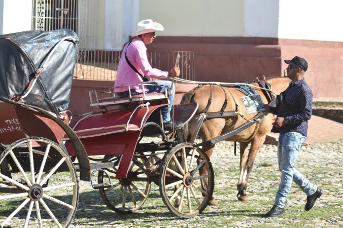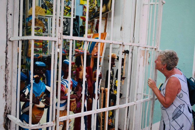 We had to go to Trinidad this morning – to get money from the ATM to settle our hostal bill and to confirm a taxi ride to Santa Clara for tomorrow. So, armed with Imodium supplies we set off in a rusty old Chevrolet to the city. Not only did I graze my leg on the rusty metal getting into the car, but Steve hit his head a cropper getting out! It was going to be one of those days.