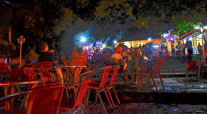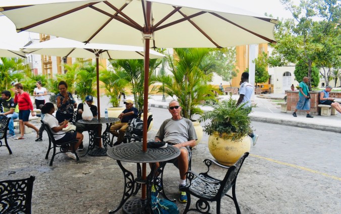 We’d enjoyed our last night in Camaguey – dined at our favourite restaurant and had made sure we had wine, just in case we don’t see any again in Cuba. We decided to have a night cap in Plaza de Soledad (Wi-fi spot) and chose the Hotel Santa Maria. Turned out to be a great choice as we met up with two absolutely lovely ladies from Miami, Betty and her niece (whose name we didn’t catch but she was the image of Angelina Jolie). We had an hour of lively chat … so great to be able to converse in English.
