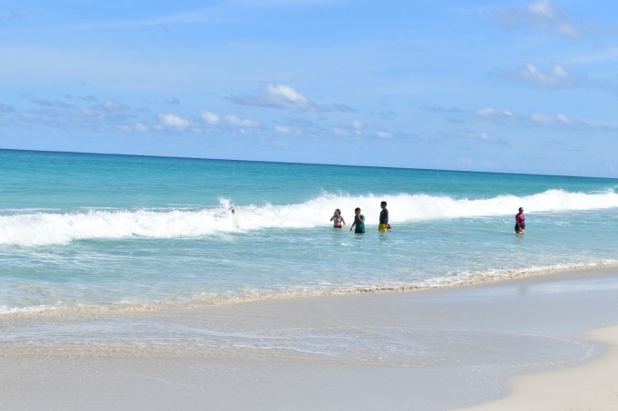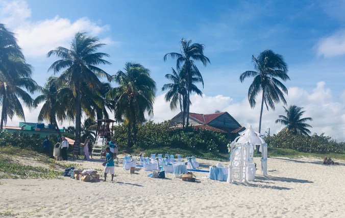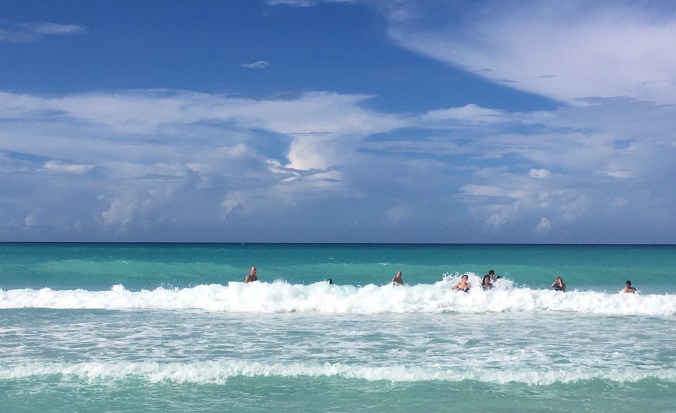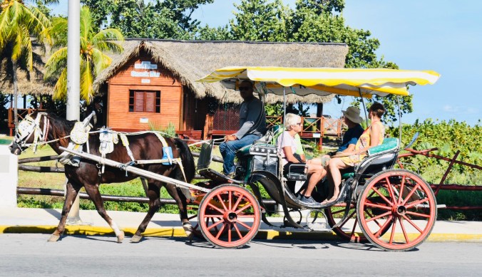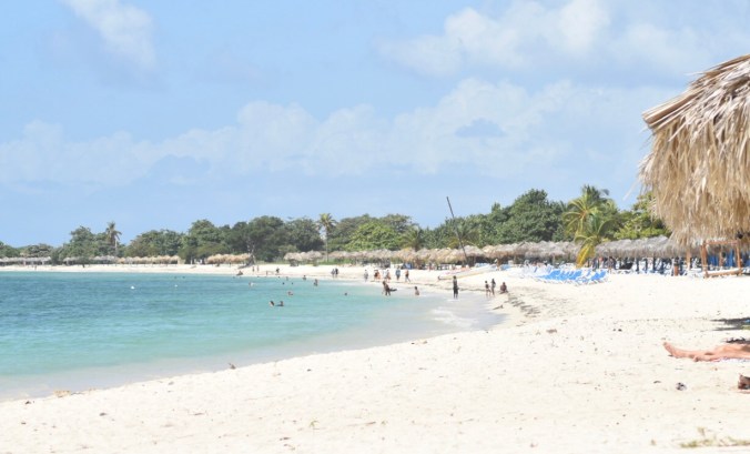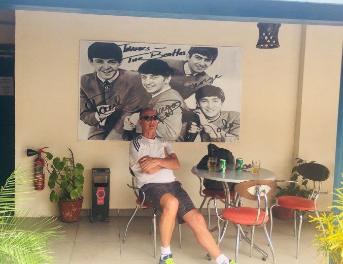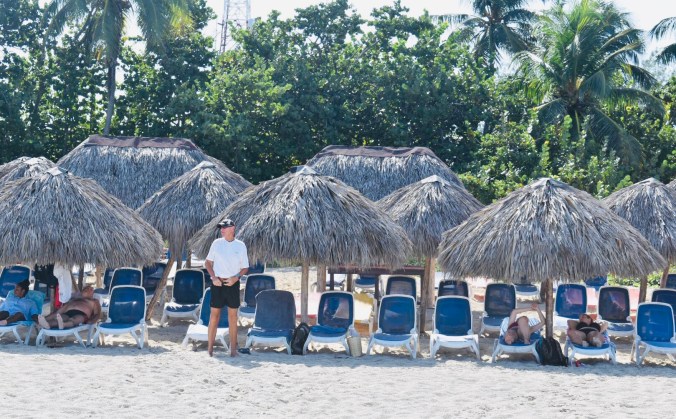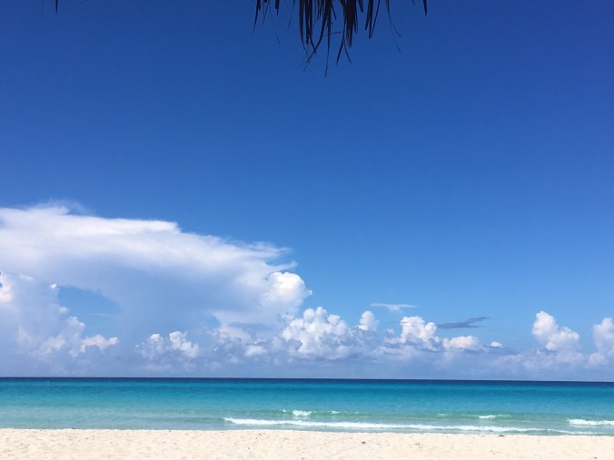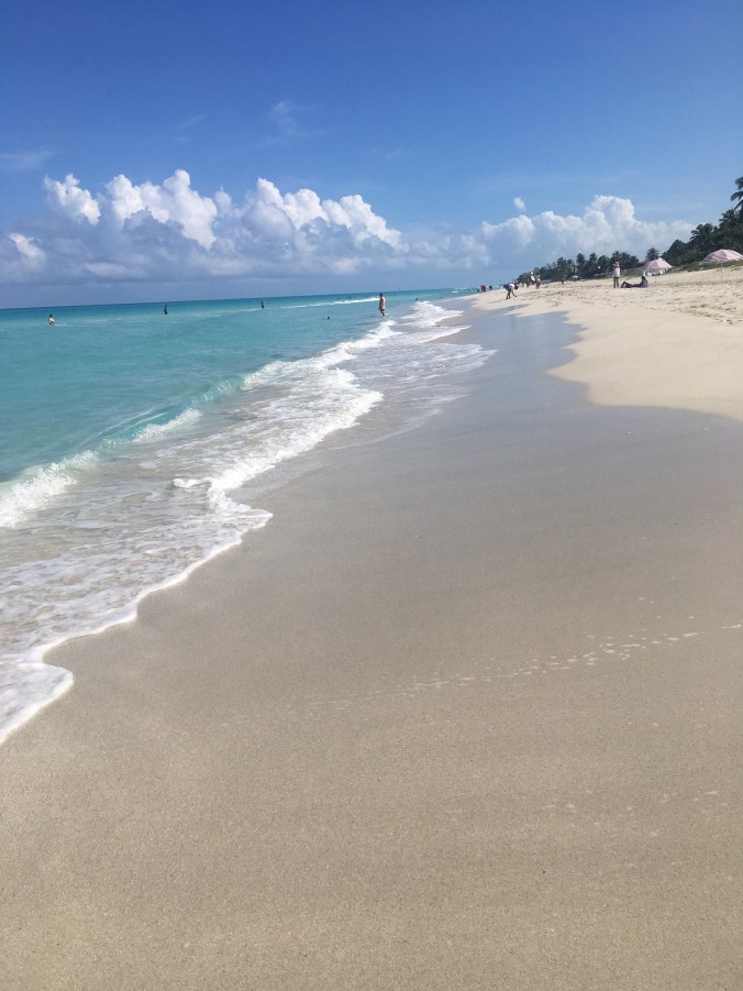 Can’t believe this is our first beach day since arriving in Cuba. And it really is one of those dreamy type beaches. Fine golden sand, palm trees, clear blue sea (and so warm), sunbeds with palm shades and a beach restaurant to hand. We spent a few hours swimming, walking and relaxing before lunching on grilled shrimps and cold beer. Perfecto.