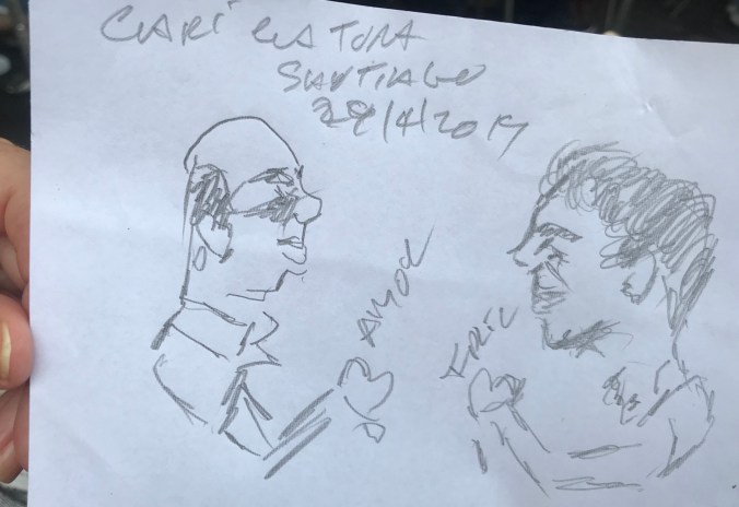 Steve had the beginnings of an upset tummy today but he soldiered on – he skipped lunch but came down for dinner in the hostal – a whole roasted chicken between us! Even some chilled white wine went down very well too.