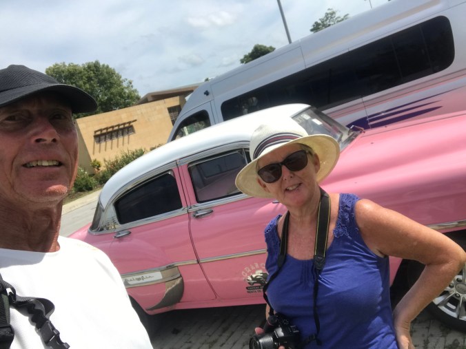 The taxi turned up on time … and it was the actual car and actual driver we’d booked! So all good. Steve sat in the front so he had a chance of unraveling his legs … complete language barrier of course but there was a sort of exchange from time to time! I tucked myself safely in the back and tried my best to sleep through the road chaos, but to no avail. Naturally no seat belts – that would be such a luxury in Cuba.