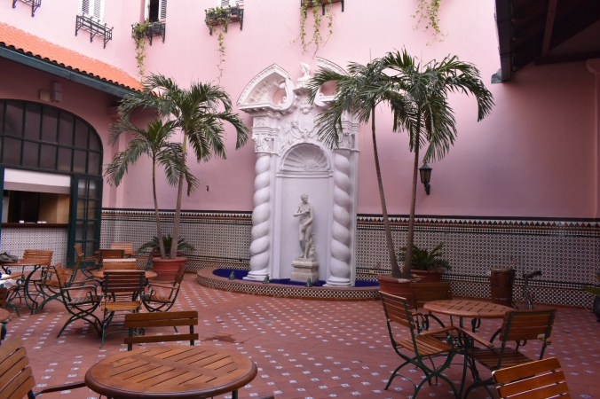 Stepping off the bus in Centro Havana we were bombarded by taxi drivers and room-renters of all sorts – a tad overwhelming! I retired to sit on a bench while Steve retrieved the luggage … but became even more of a target as I was a woman alone! I was particularly receiving a barrage of information from a chap with one arm …. I know itβs probably not very PC and not particularly promoting diversity – but there was no way I was going to get into a taxi with a one-armed driver, whether it was a car, bike or horse and cart!! We managed to escape and find ourselves a yellow state taxi to drive us to our very splendid hotel – Hotel Sevilla.