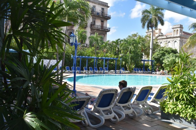 So, our first luxury accommodation since weβve arrived in Cuba, itβs stunning. A very old hotel, steeped in history – a little shabby in places – but oh, the joy of having a large bedroom, big bed, cotton bedding and pillows, a grand lobby filled with people, live music in the cafe area day and night, fabulous pool, roof top bar – we are appreciating every scrap of this magnificent place.