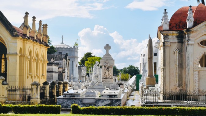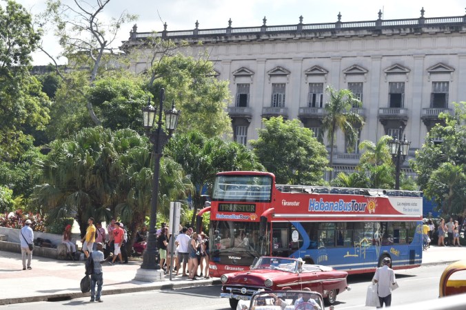 We ventured out on an open top bus tour this morning – always a good way to get an overall impression of a city. We stopped off at Plaza de la Revolucion and also the Cemetery … canβt help but be amazed at the grand headstones here in Cuba. The tour also took as down to the cruise ship area and the docks where we had a brief look at a local craft market. You had to be so careful of low bridges and low hanging overhead cables – I even found myself crouching so goodness knows how Steve felt … and if you’d stood up you’d have lost your head!! Hundreds of photos of course, so much to see.
