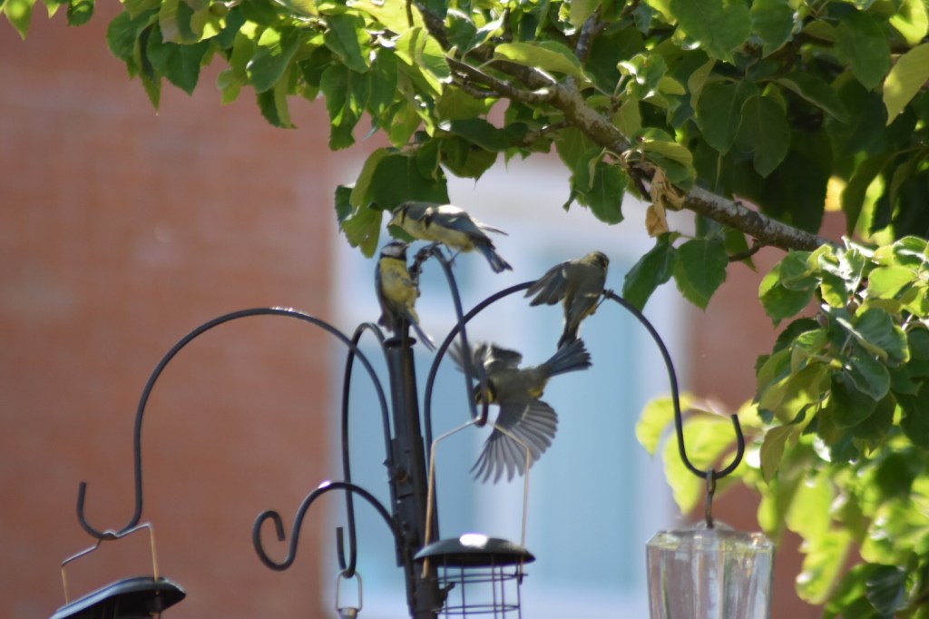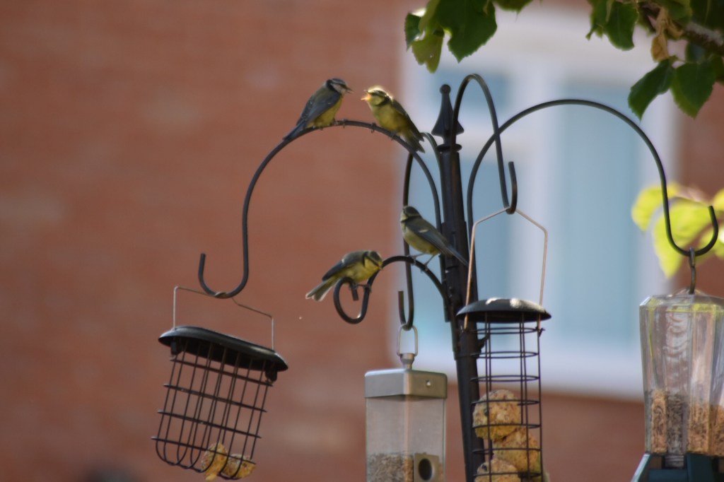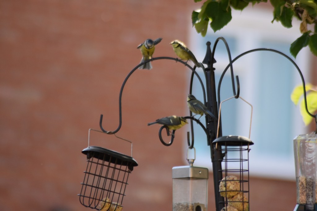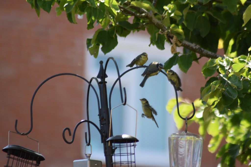 I have to confess that we get SO much pleasure out of our feathery friends coming to visit. Steve is regularly updating the type and quality of feeders, analysing which feed is most popular, routinely refilling and chasing the bigger birds away (think we’re missing human company)!! This week there’s been lots of fledgling blue tits who fly to the feeder to be fed by ‘Mum’ and then nervously fly back to the nest, sometimes dive bombing us in the process.