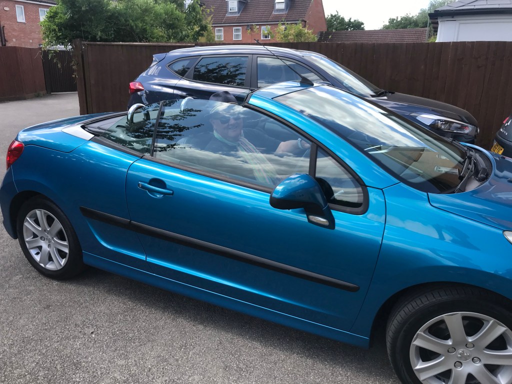 But we did have a real garden visitor this week … our lovely friend Derek drove down from Birmingham to see us. It’s his first trip out since Lockdown and he wanted to give his new motor a run – much car envy!