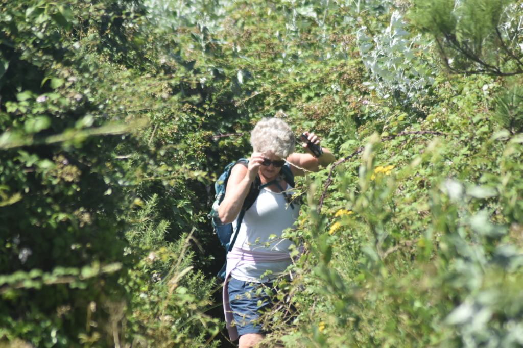 Bit of a mixed day weather wise but we were equipped. A few other not so nice bits (1) the constant reminder that there were adders in the area!! (2) about a mile of walking on shingle … and not the compact type but the feet sinking deep type! (3) pretty overgrown in parts -brambles, thistles, stinging nettles – in fact everything that’s out to get you!