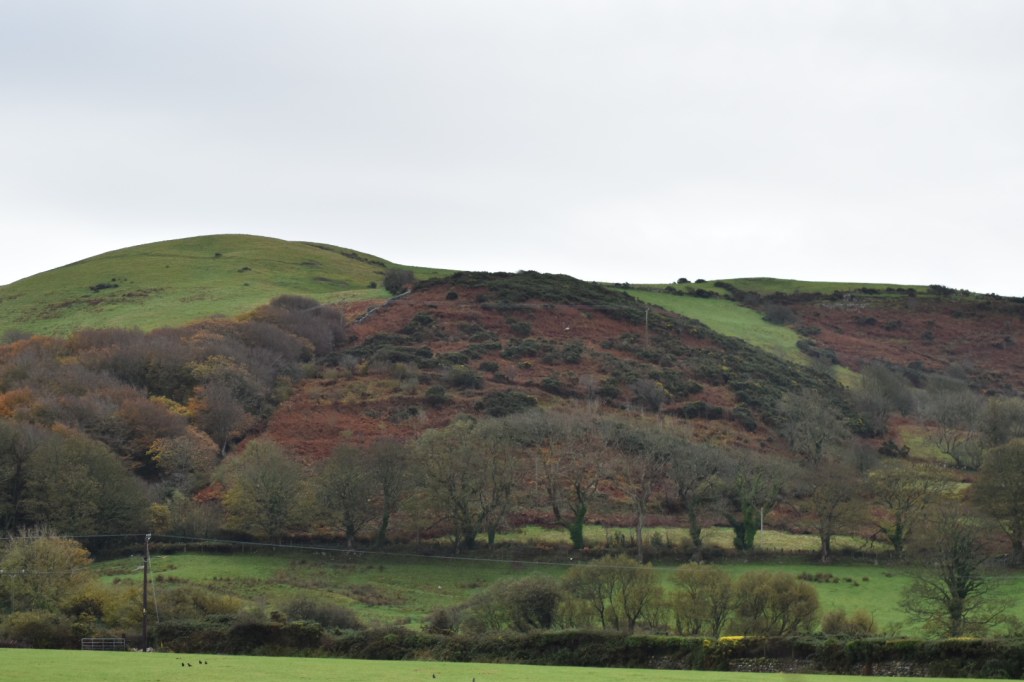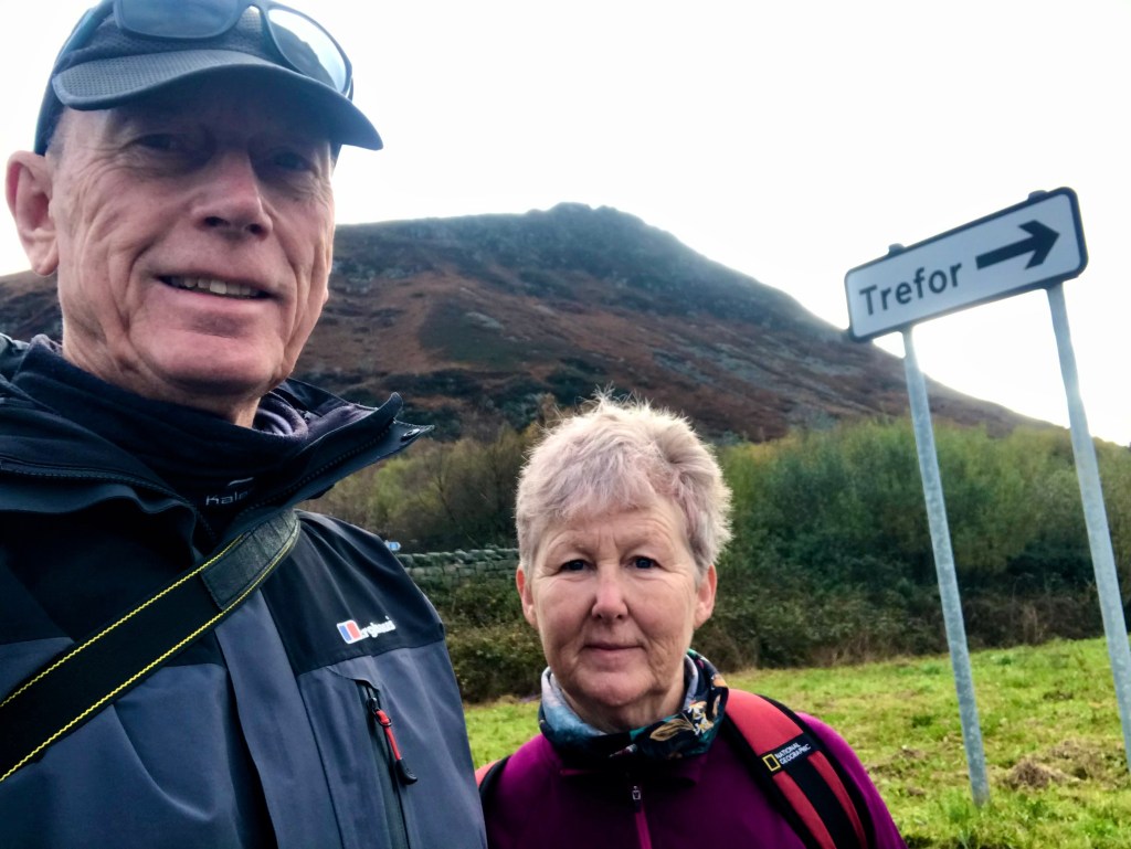 Today we got the 91 bus to Dinas Dinlle again, the same friendly driver as yesterday and the same hazardous narrow country lanes. But not so bleak today … not exactly sunny but bright, no wind and no rain … that’s a winner in our books. There was a big hill at the start but fortunately the OS app directed us to walk along the road – we certainly weren’t going to argue. This did take us away from the beach but as there was a distinct lack of coastal path signs we relied on the app to steer us in the right direction.