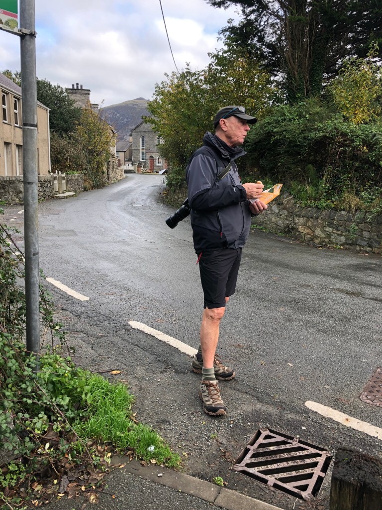 The last mile took us away from the busier roads and down into the village of Trefor, our planned destination for the day. We tucked into sandwiches as we waited for the number 12 bus to take us back to Canaerfon. 9 more miles in the bag.