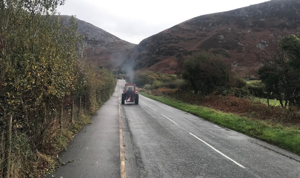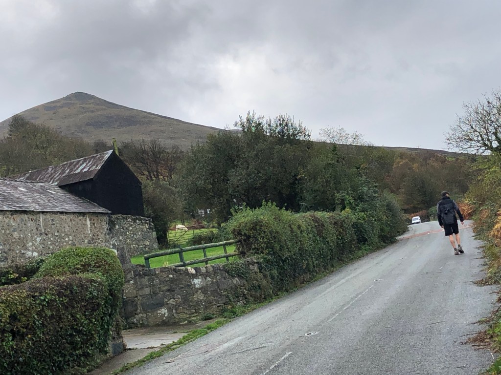 It turned out to be a whole route of road walking today, some quieter roads but to be honest the bulk of the 9 miles was along a main A road with vehicles whipping by us at 70mph – there was pavement though so grateful for that. The distant hills were scenic and initially shrouded in low cloud.
