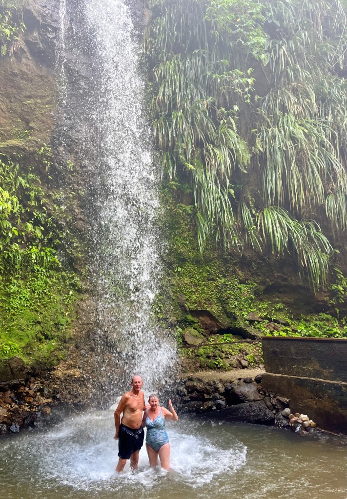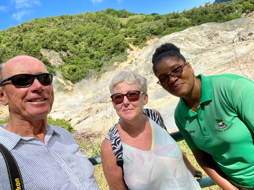 We headed on to the town of Soufriere, stopping on the way at the Sulphur Springs – the only drive through volcano in the Caribbean. The smell hits you long before you arrive and takes some getting used to. It supposedly clears your sinuses – I should say it does … and more. It last erupted in the 1700s and is thought to be dormant – though bubbling away like a good’un. We had such a sweet guide called Suzette who was so knowledgeable on volcanos and sang to us as we walked too. We relished her company as we toured around and she introduced us to the gardener, Junior … who gave a huge toothless grin when Steve called out his name. It felt so good to have other people in our lives!! But very soon a whole stream of tourists arrived – it felt novel at first as we haven’t seen any non-Lucian people since being in St. Lucia – but as more and more arrived we decided the quiet life was preferential.