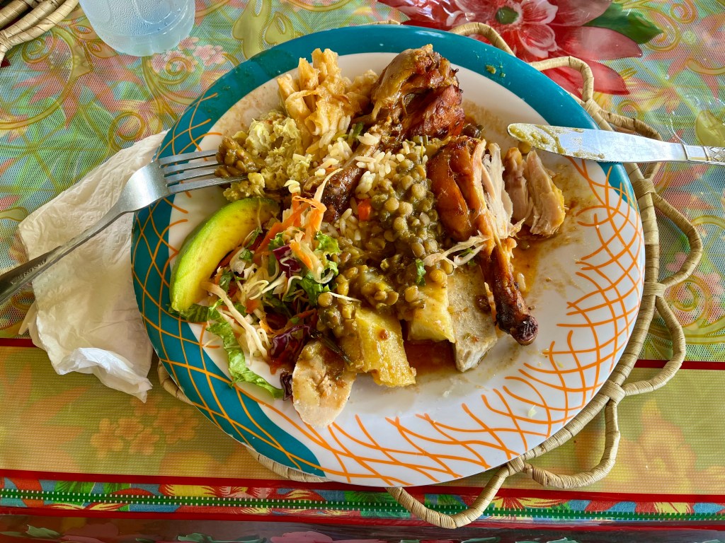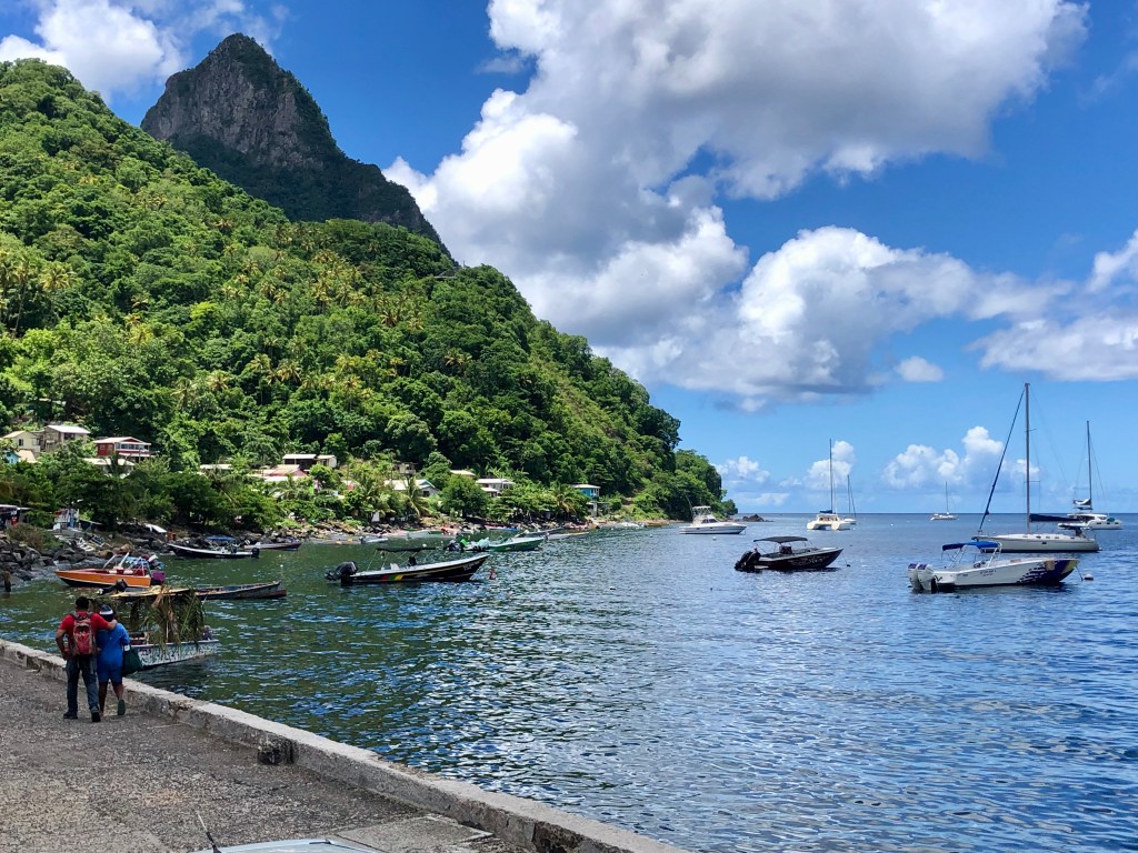 Suitably refreshed and re-clothed, we drove on into the town of Soufriere, which sits on the West Coast of the island, overlooked by the Pitons. We took a little look around the town and it’s beautiful harbour before joining Presley for a traditional lunch.