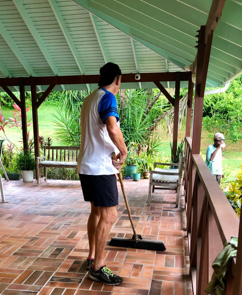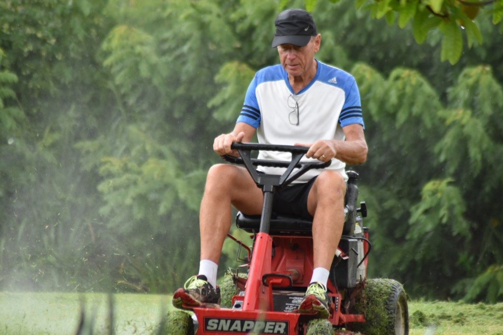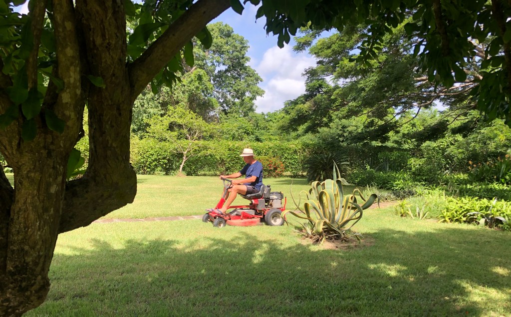 And the mowing commenced this week … and, despite some heavy duty tropical rainstorms, Steve managed to complete the exercise over three days, choosing early morning hours to avoid the strong sunshine. The lawn looks great … and he so enjoyed the ride.
