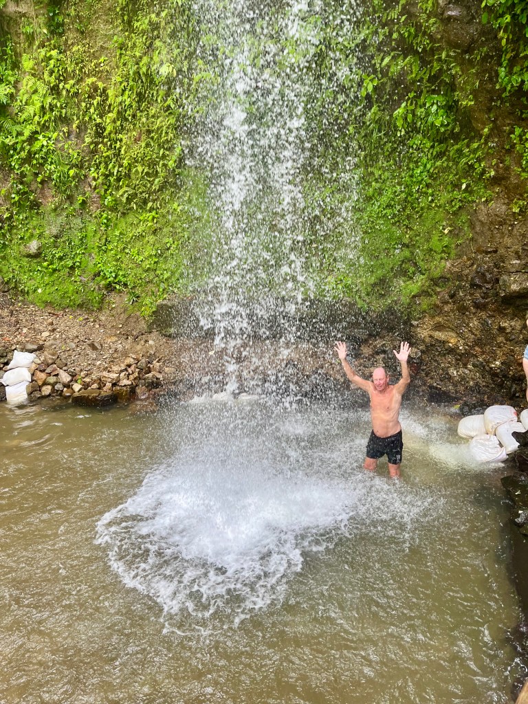 Our next stop was the opposite extreme. Presley drove us to the Toraille Waterfall where we could shower off properly … in freezing water. Although painful in its force, we much preferred the water temperature here and again were lucky to beat the crowds. A beautiful peaceful spot to enjoy.