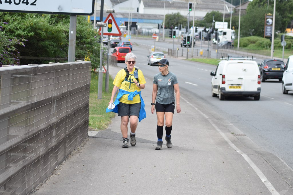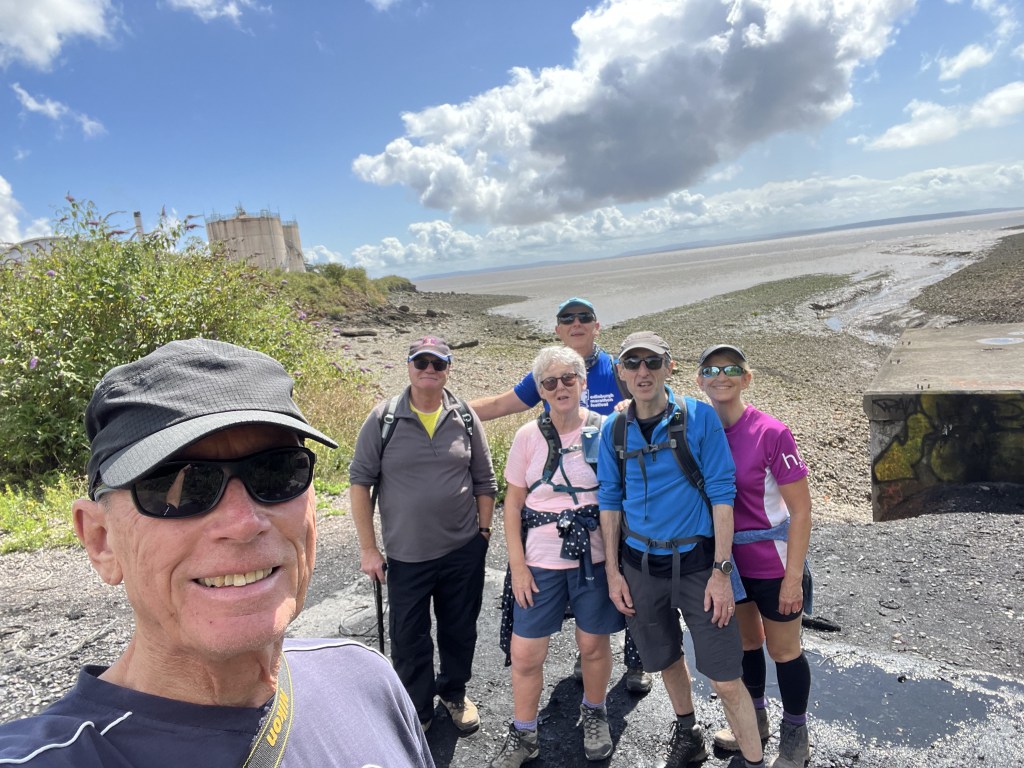 We had to endure about 6 miles of industrial and urban walking first, accompanied by some heavy traffic … and once again the waterproofs were on and off. We had great views of the Newport Transporter Bridge, built in 1906, which transports vehicles and passengers in its suspended gondola – this could have been our route and would have saved a couple of miles but (thankfully) it was closed. My feet had got so badly blistered yesterday and I’d plastered up the best I could but it honestly felt like I was walking on broken glass. So between that and getting engrossed in more chatting today, the pace was somewhat slower.