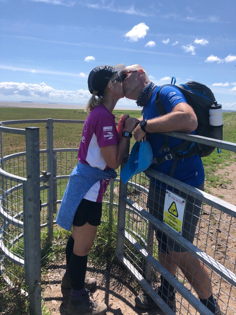Shortly after we were back on that familiar sea wall, but we had had some variation earlier with some woodland walking, meadows and some long unpleasant sections of overgrown prickly things. Lots of boardwalks on this stretch which aided the journey …. and a plethora of kissing gates which meant a plethora of kissing. xxxxxxx