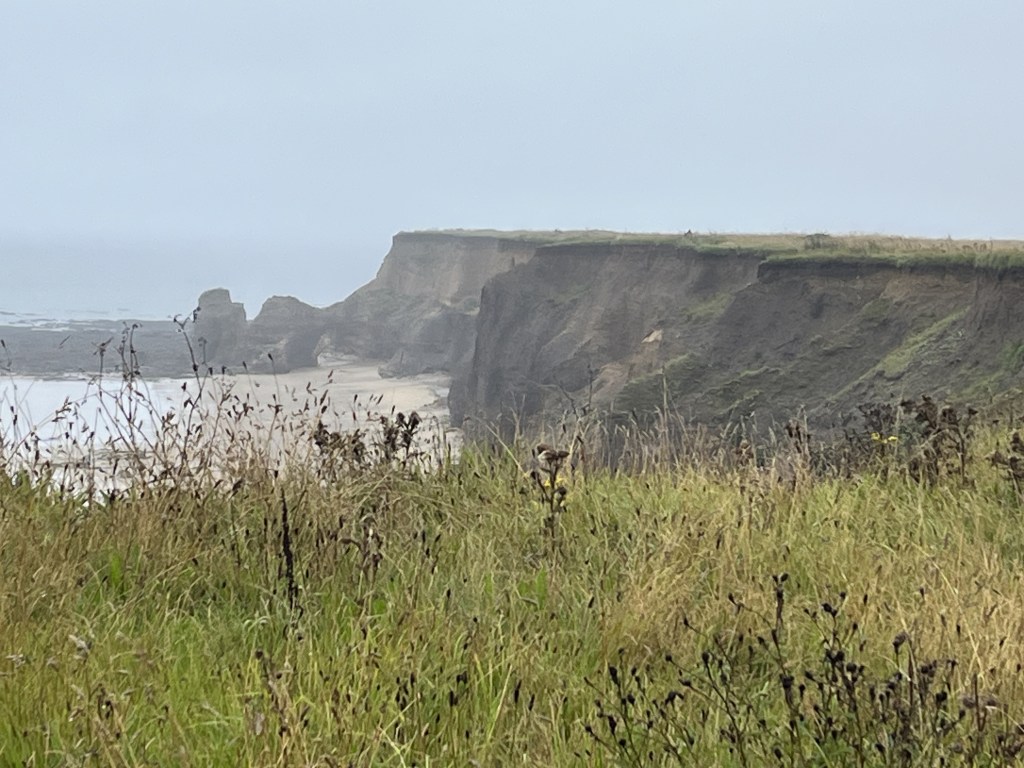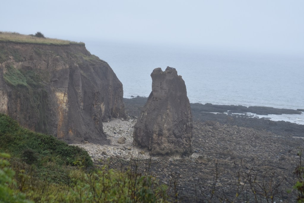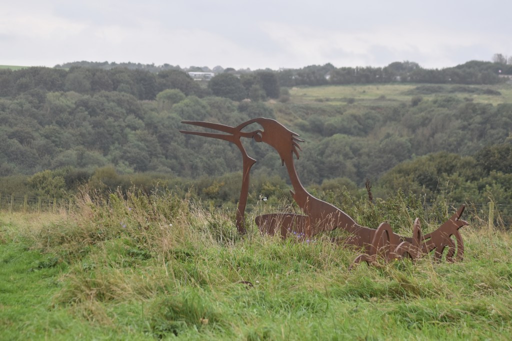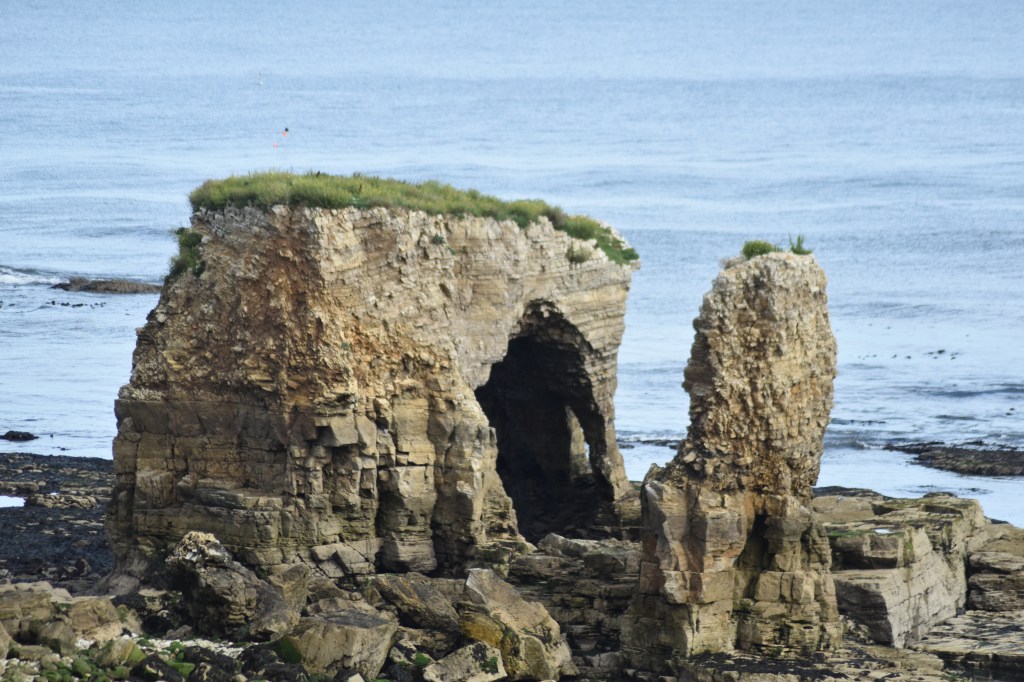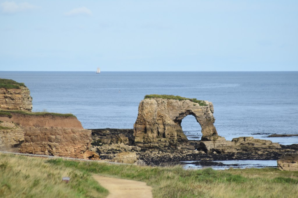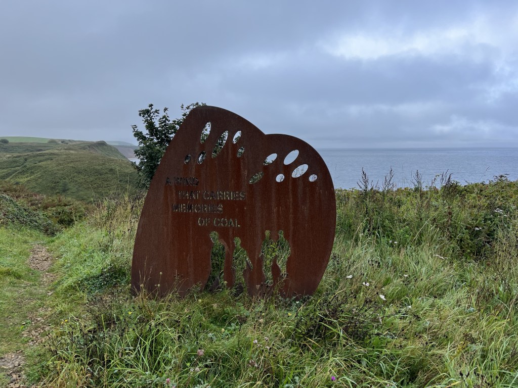 The first couple of miles was not as glam as yesterday’s beginning although Steve was excited to see the homage to footballer Raich Carter. But the coastal path route was signposted well (always a bonus) and we soon found ourselves at Hendon Beach. Looking ahead it was clearly not going to be a promenade day, very much cliff top walking. We got chatting to some Local Council workers who were there to cut grass and, when asked, we told them that the path we’d experienced so far was well maintained and clearly signposted. All good … they were chuffed.