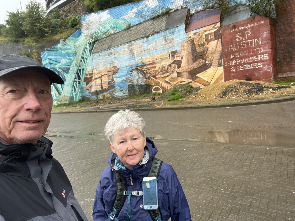 Disembarked at St. Peter’s Church in Sunderland and had a short walk through the city, taking in the spectacle of the ‘Stadium of Light.’ Many years ago, Steve drove me, Alice, Geraldine and Emma all the way up here for a ‘Take That’ concert … waited for us and drove us home again. In desperation I had bought the much sought after tickets online, not having a clue how far away from us it was – but Steve came to the rescue, “Love is ” … and all that.