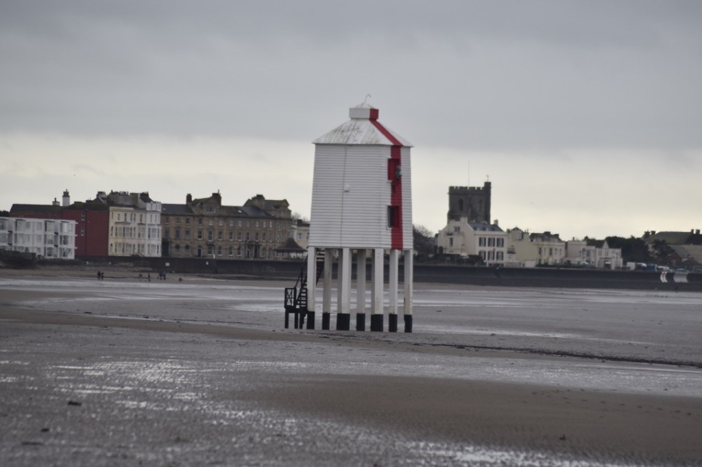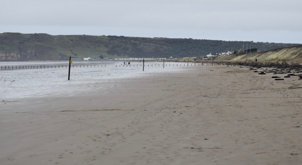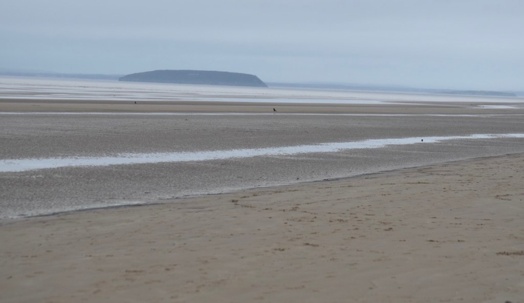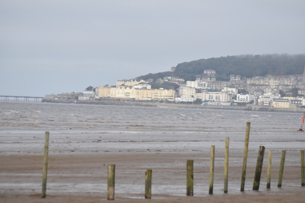 We drove the car to Weston-super-Mare as yesterday’s reliance on public transport had added an extra 4 hours to our day out. Unfortunately we just missed a bus and had to wait an hour for the next No. 20 to Burnham. On arrival we were pleasantly surprised that we could walk along the beach (as opposed to the sand dunes) the 6 mile route taking us to Brean. It was overcast but dry and there was lots of life on the beach – dog walkers and children playing – a beautiful start to the day. There were frequent signs about sinking mud further out, so we made sure we kept close to the back of the beach. We didn’t need any stress today.