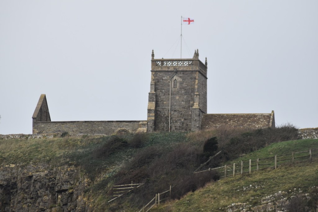 At the top is a site of a Roman temple and the path led us up and down to a National Trust property called Palmerston Fort – it is now a ruin but was built to defend the country against a possible Napoleonic invasion and later used in WWII. It was fairly muddy underfoot and slippery so we kept looking for shortcuts but they weren’t abundant. We were fairly close to the end of the headland when we spotted one – it meant a fairly steep descent so we took it steady – we had about a metre left to go when my feet went from underneath me and I took a slip slide down, caking myself in thick yellow mud. I wasn’t amused.