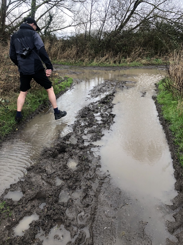 It wasn’t even 5 minutes before we were forced to take said risk!! The coastal path sign indicated that the path was available between April and July. The trouble was that there didn’t seem to be any alternative and we had to get back to our car. Steve was getting concerned about getting back in daylight. The gates to the embankment path were open so on we went, and the next few gates were open too. It was wet, muddy and unpleasant but it least it was taking us back to where we needed to go. About halfway along the 3 mile stretch of embankment however, the gates were padlocked … but climb over we did in preference to going back. Our spirits were low but we trudged on and climbed over numerous gates. When we got to the turning point to take us to the other side of the estuary, we made the decision to abandon ship – we were facing another 3 or 4 miles of embankment walking and unknown territory in terms of locked gates etc.