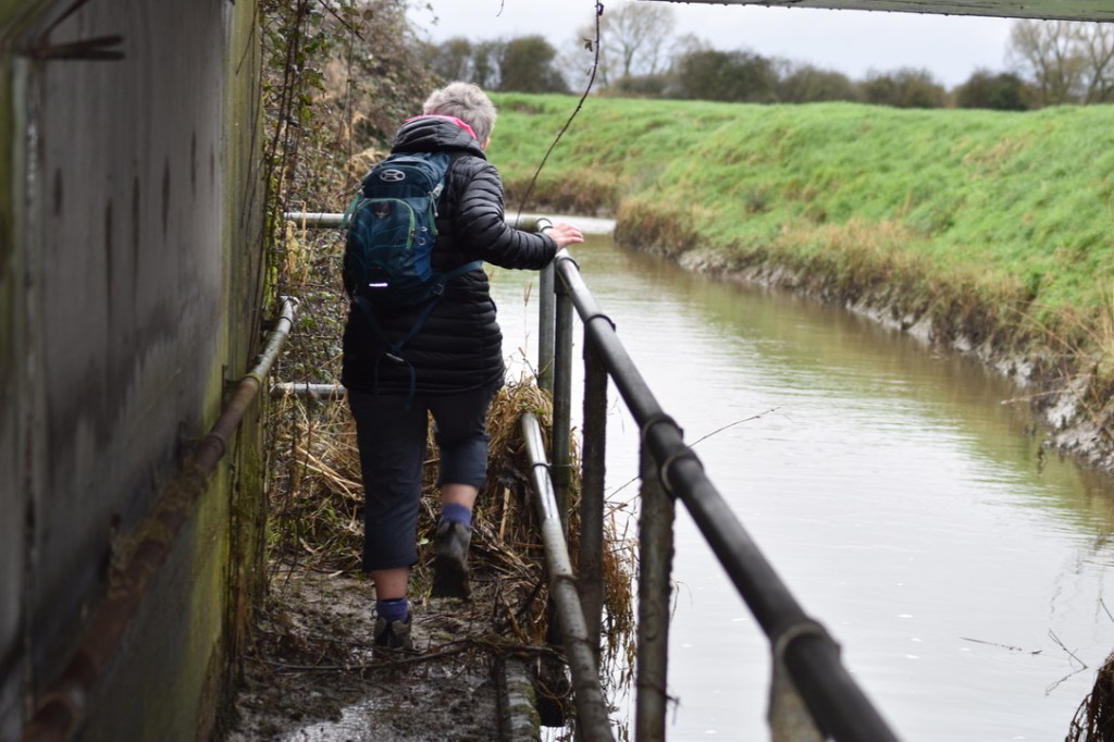The bit of the route that Steve had worried about the most came to fruition in the shape of 5 farm fields that we had to squelch our way through, quite literally … it was gross. But he was so relieved that the promised bridge was in place, as was the ladder down to the stinky ‘ cattle creep” underpass … and so we managed to achieve a way through under the M5 Motorway.