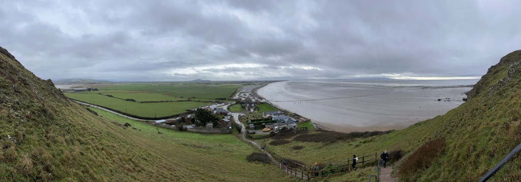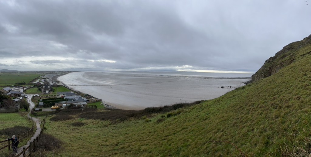 Looking back on our very first climb!!The white peaks of ButlinsThe very start of the South West Coastal Path – on Minehead promenade.